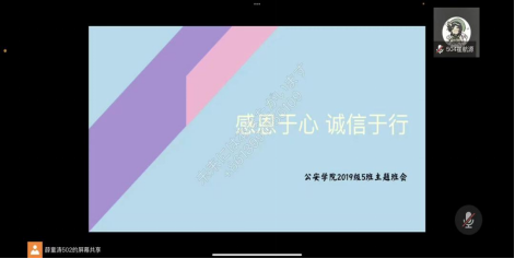 为增强大学生的感恩意识,促进大学生常怀感恩之心,引导学生坚持诚信为本,提高自身修养,真正将大学生的思想政治教育与资助育人工作紧密联系起来,创建健康和谐、积极向上的校园文化。明升M88 特开展“感恩于心,诚信于行”主题班会活动,2019级各班通过线上线下分别召开此次班会,积极宣讲感恩与诚信的相关知识。