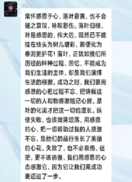 主题班会开展完毕后,各班同学在微信群中积极发表自己的感悟与认识。