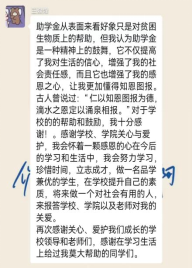通过此次主题班会的开展,同学们不忘感恩,不忘国家资助之恩,营造了自强自立的良好氛围。加强了同学们“言必行,行必果,知行统一”的诚信观念,增强了同学们的感恩意识、培养了学生诚实守信的品质。成功将资助与育人进一步有效的紧密结合起来,为共创文明和谐校园而做出贡献。