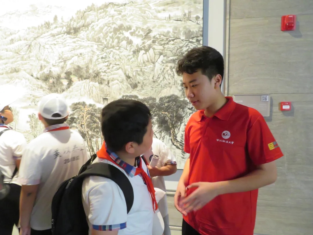 在孔子博物馆参观期间,为传播和扩大中华优秀传统文化影响力,实践队通过媒体平台同步进行线上直播,与观众实时解说互动,丰富了活动形式。与此同时,团队成员对馆内研学的中小学生进行了随机采访,采用问答的方式了解大家对传统文化的认识程度,并对儒家文化相关内容进行科普。