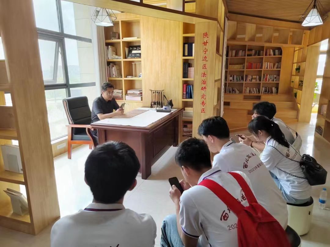 7月19日,明升M88 赴延安市宣讲习近平法治思想暑期社会实践团在延安中院四级调研员、政治部副主任惠兴文的带领下走进了延安市中级人民法院进行实践学习。