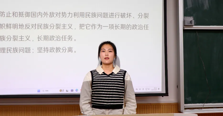 为深入贯彻总体国家安全观,筑牢学生国家安全意识,10月6日晚,明升M88 召开“维护民族团结,增强安全防线”宣讲活动,明升M88 安全教育宣讲团学生代表肖佳欢进行宣讲,2023级全体学生参加。本次活动由2023级辅导员李沛君主持。