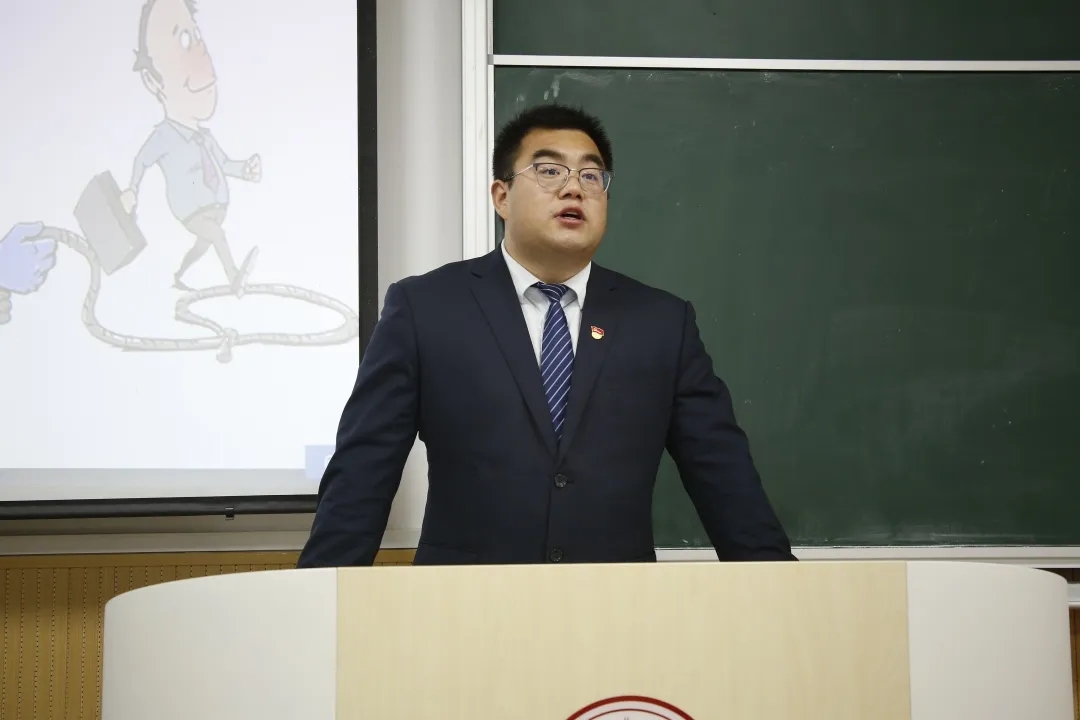 王进城围绕“什么是电信诈骗”、“电信诈骗的常见形式”、“如何识别防范电信诈骗”、“被骗后的补救措施”四个部分着重介绍了当下电信诈骗的特点,并结合亲身经历现身说法,对假称退还养老金、网络招工、微信诈骗、校园贷等常见骗术进行讲解,提醒同学们要注意防范身边潜在危险,注意保护人身财产安全。