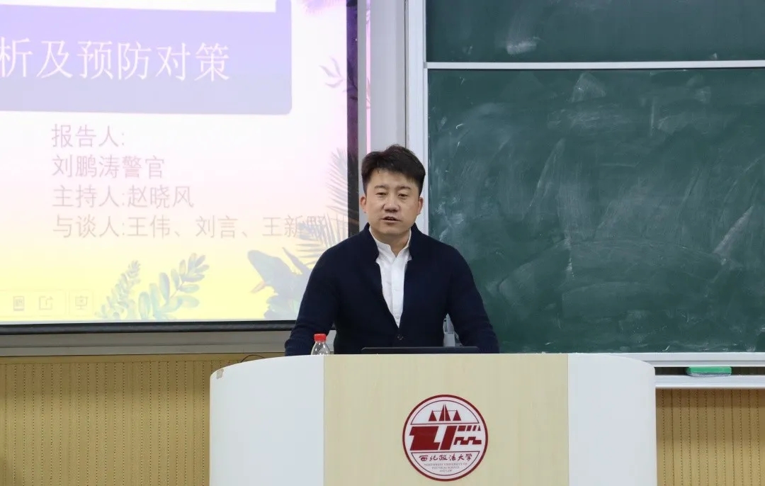 为帮助学生进一步了解犯罪心理学知识,培养大学生良好的人格品行和心理素质,保护大学生心理健康,11月20日晚,明升M88 于天平楼AJ12举办“当前犯罪心理浅析及预防对策”主题讲座。本次讲座邀请西安市看守所副所长刘鹏涛担任主讲嘉宾,明升M88 副院长闫小军,副教授赵晓风、王伟,心理学讲师刘言、王新野,各年级学生代表参加。讲座由赵晓风老师主持。