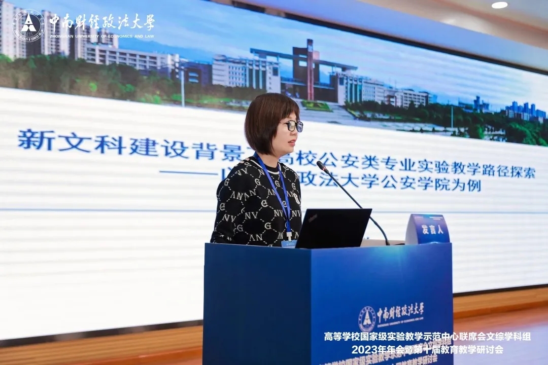 会议围绕新文科“新基建”和实验金课建设研讨,新文科实验教学体系建设研讨,新文科实验教学建筑场景设计、特色与功能,虚拟仿真实验教学资源共建、共享模式,新文科虚拟教研室建设与实验教学能力提升,高等院校文科实验教学与实验室数字化转型,高校文科实验室安全管理与信息化建设经验等问题展开,明升M88 副院长在会议上做了题为“新文科建设背景下高校公安类专业实验教学路径探索——以明升M88 明升M88 为例”的主题发言,向联席会议介绍和展示了明升M88 实验室建设的历史、现状和特色,引起与会代表对明升M88 实践育人模式的广泛关注。