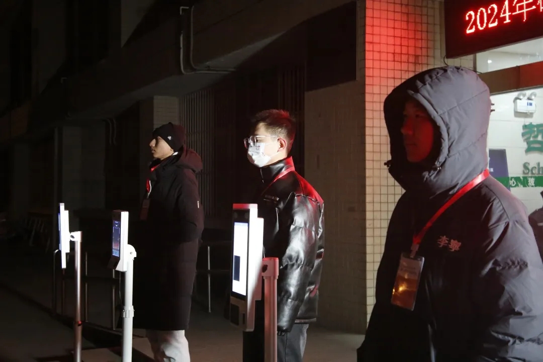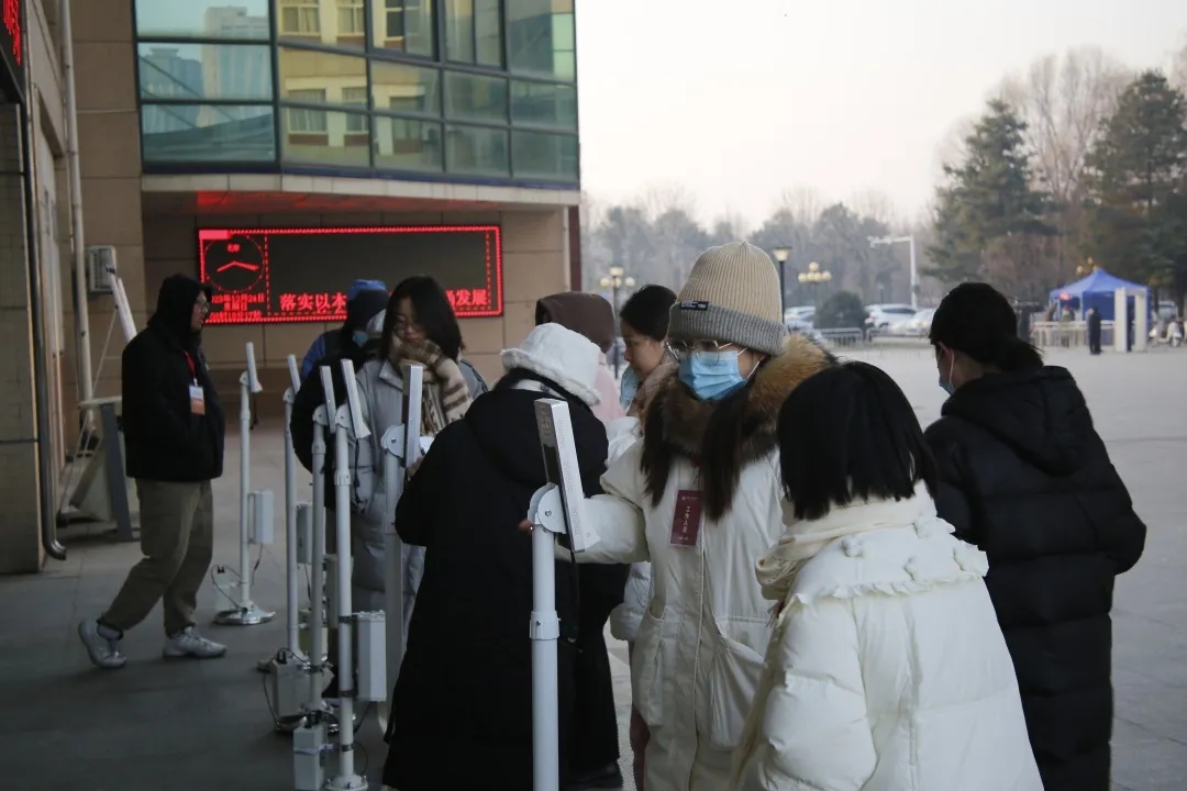 天还未亮,温度只有零下几度,志愿者们早早到达考场附近,提前熟悉自己的工作和任务,他们不惧寒冷,耐心细致地帮助考生解决问题,临时保管、寄存物品,尽可能为考生提供便利服务和帮助。
