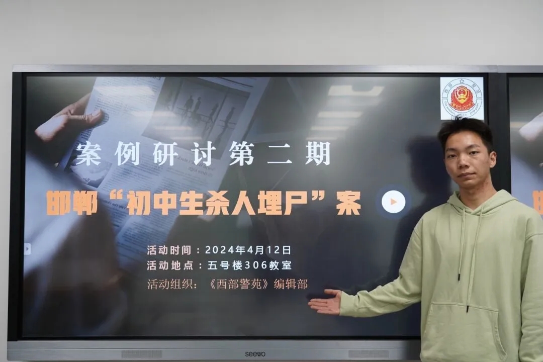 为提高同学们对未成年人犯罪的认知,加强对法律知识的了解,树立正确的人生价值观。4月12日晚,明升M88 《西部警苑》编辑部于诚意楼306教室开展第二期案例研讨活动。活动由《西部警苑》编辑部期刊部实习编辑蔚芪星主持,《西部警苑》编辑部全体成员参加。