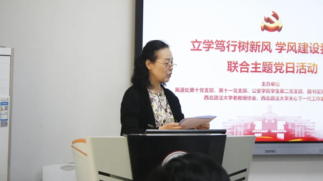 ▲离退处党委第十党支部书记洪灵芝主持