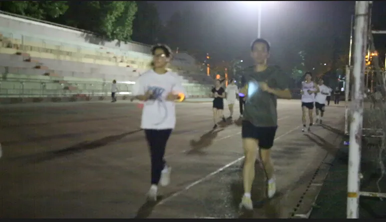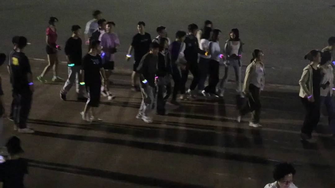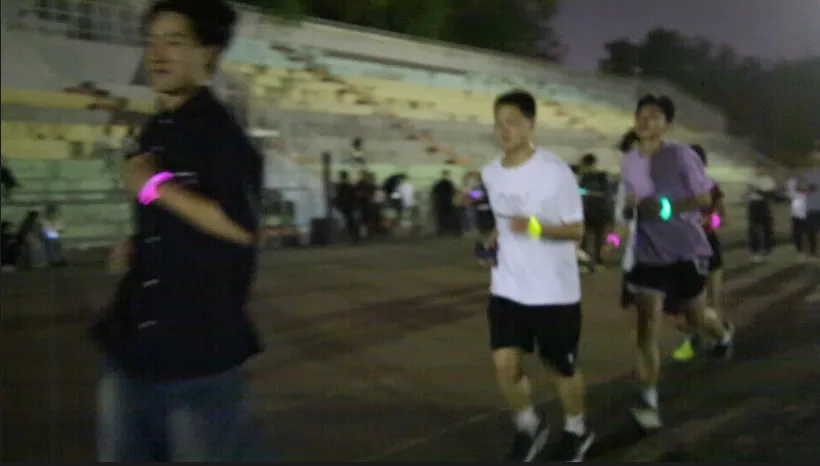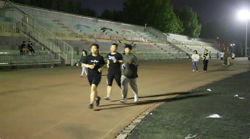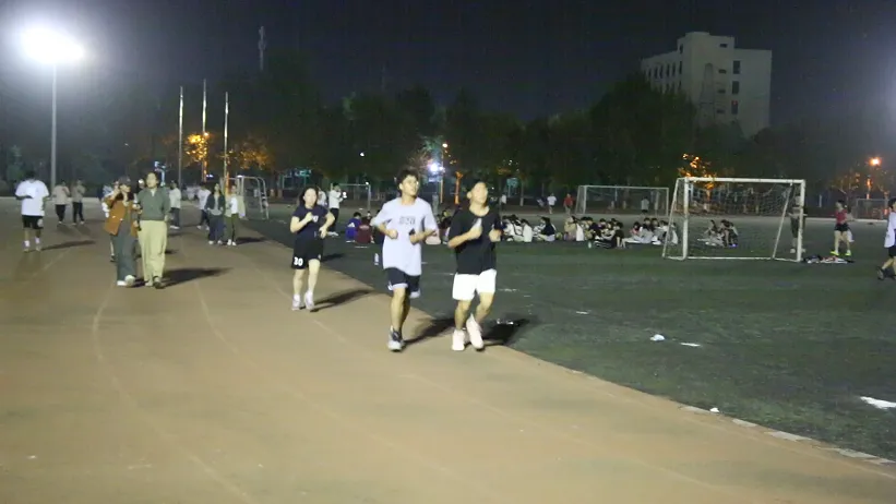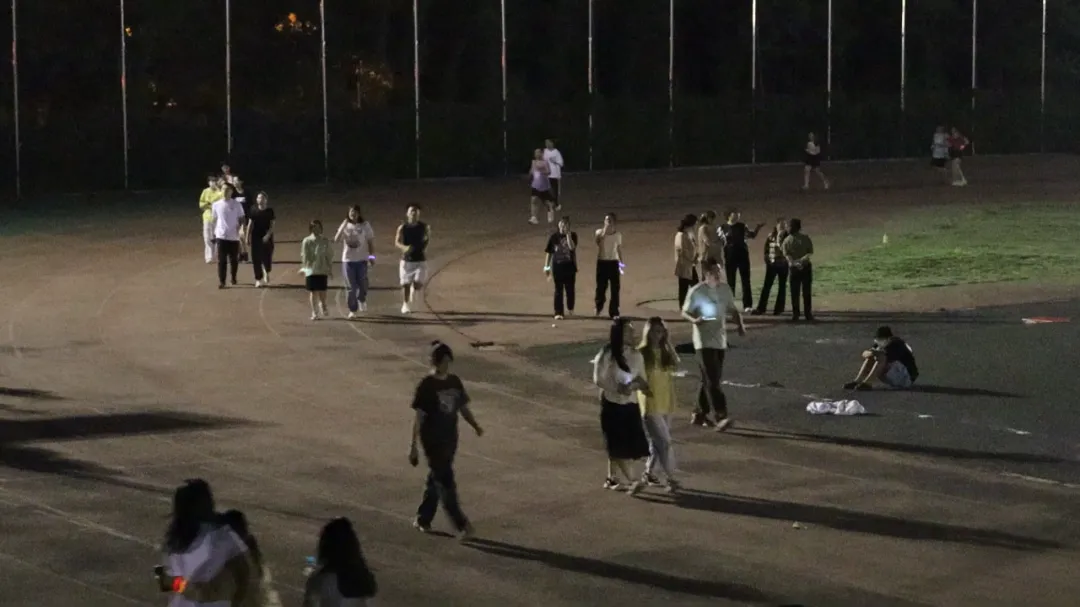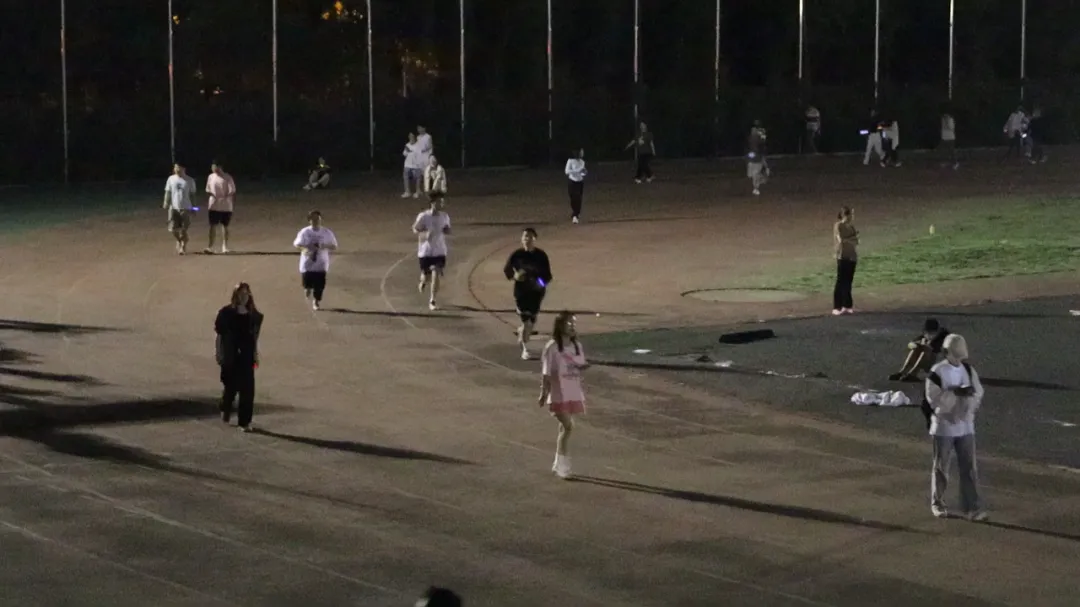 随着歌曲的不停切换,活动氛围愈渐浓烈。原本昏暗冷清的操场,因为点点星光和大家的欢歌笑语,也变得生动起来。同学们在简单的摆臂和跨步中尽情享受跑步本身的乐趣,在音乐和晚风中肆意挥洒汗水。一路上荧光熠熠、星光点点,同学们对运动的热情,在西法大的操场上被充分释放和点燃!