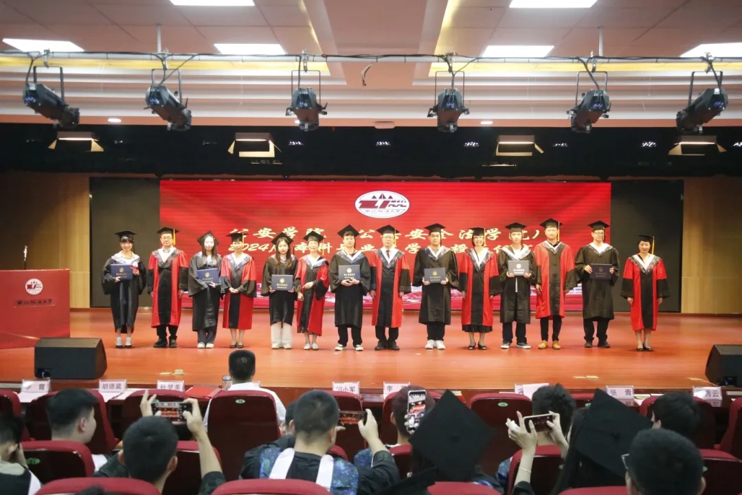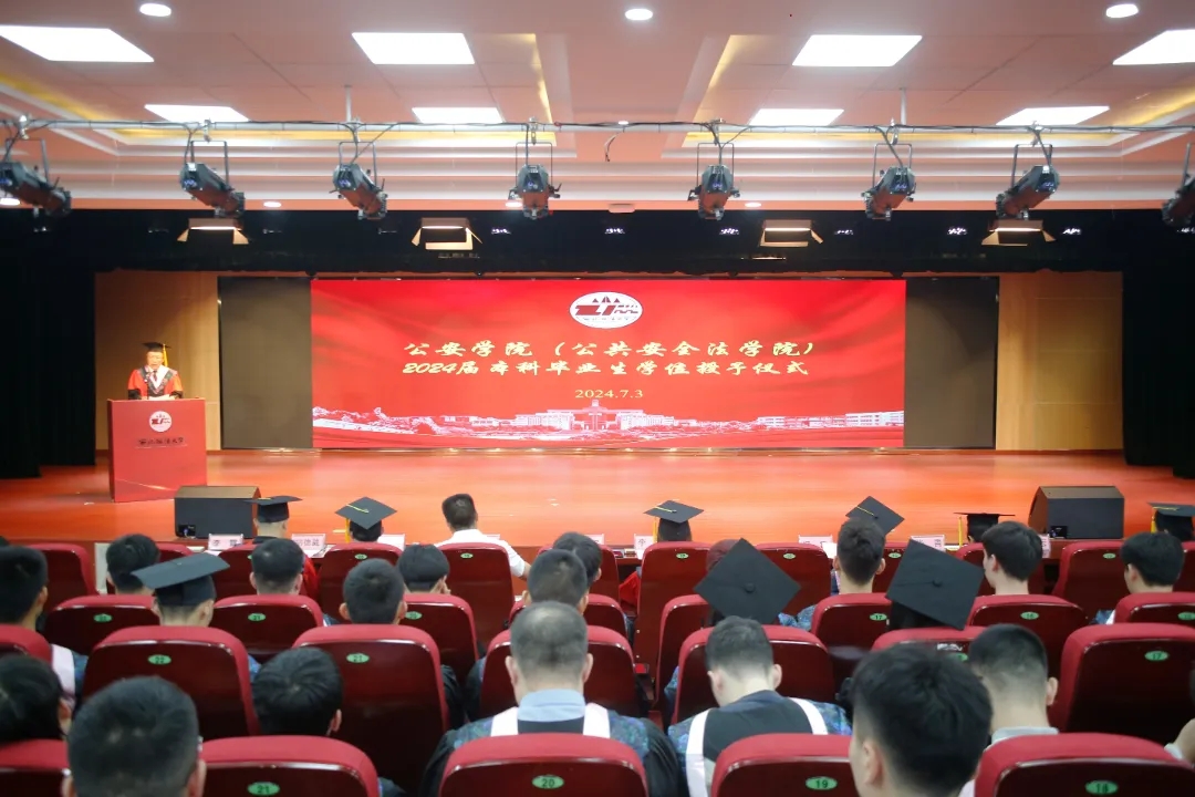 闫小军在致辞中对2024届本科生顺利毕业表示热烈的祝贺。忆往昔,他回顾了同学们大学四年的宝贵经历,对同学们的刻苦努力与辛勤付出给予肯定与赞扬;展未来,他勉励同学们延续红色血脉,继承公安传统,不负韶华,努力拼搏,展现公安学子的独特风采。
