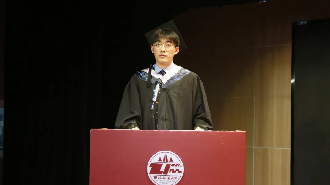 2020级经济犯罪侦查专业魏祚程作为毕业生代表发言,他回顾了在母校学习与成长的点点滴滴,向母校、老师与同学表达了深深的眷恋和感激之情。他呼吁所有毕业生不懈怠,肯实干,能担当,敢奉献,一同做西法大腾飞的共进者,一同做明升M88 跃进的同路人。