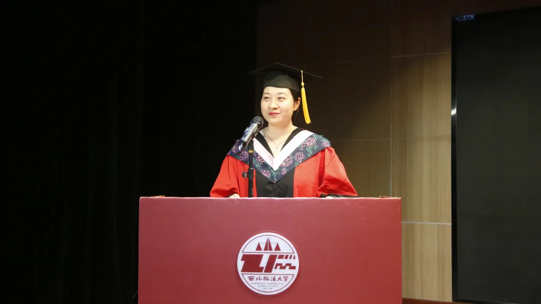 青年教师代表谭秀云声情并茂地讲述了自己作为一名政法学子,从求学到就业的经历,并对母校的陪伴、教育与支持表示衷心的感谢。她与同学们分享了三点心得:第一,志存高远,胸怀报国之心;第二,学他人智慧,取长补短;第三,恪守良知,做最好的自己。最后,她希望同学们像太阳一样,用自己的热情,去温暖身边的人,去温暖这个时代。