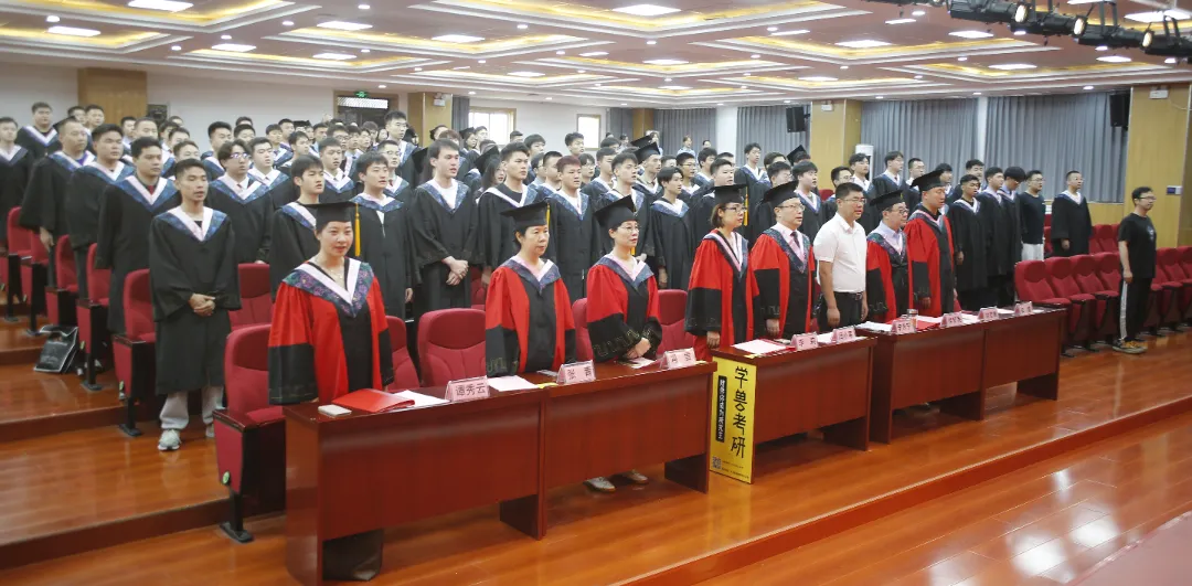 全场师生齐唱国歌,雄壮激昂,学位授予仪式拉开帷幕。