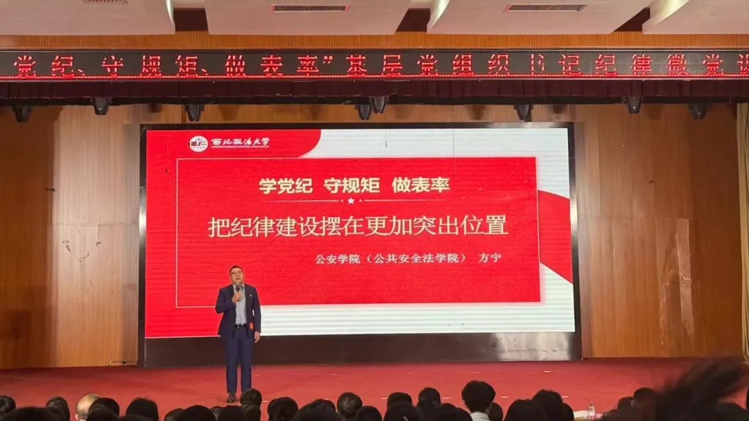 在“学党纪、守规矩、做表率”基层党组织书记纪律微党课决赛中,方宁以“把纪律建设摆在更加突出位置”为主题,结合习近平总书记关于严明党的纪律的重要论述,阐释了党的纪律建设在党的建设新的伟大工程中的重要作用。他还联系个人的学习感悟和实际工作经验,进行了深入浅出、内容充实的演讲。