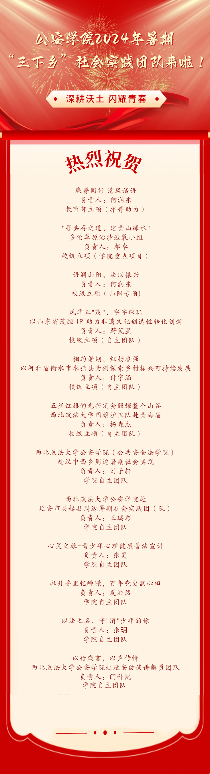 为深入学习贯彻习近平新时代中国特色社会主义思想和党的二十大精神,落实习近平总书记关于青年工作的重要思想,增强实践育人工作成效,明升M88 积极组织开展暑期“三下乡”社会实践活动。经过明升M88 审核、明升M88 答辩,明升M88 最终确定十一支社会实践团队,其中包含一支教育部立项和校级立项(山阳专项)团队、四支校级立项团队以及六支明升M88 自主团队。