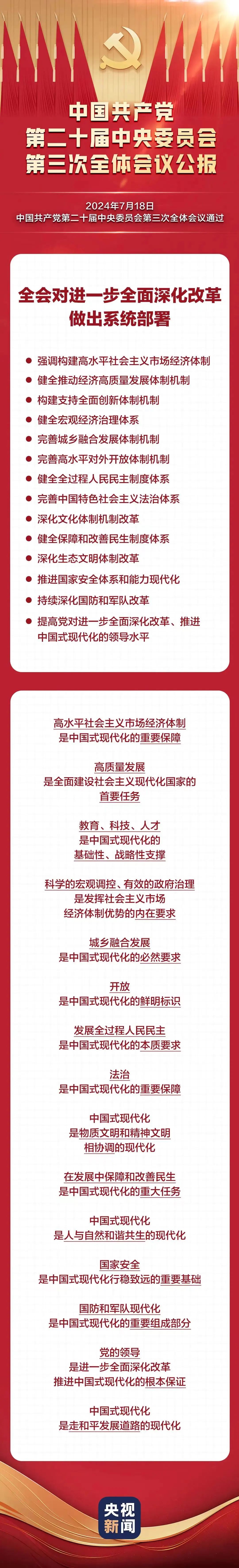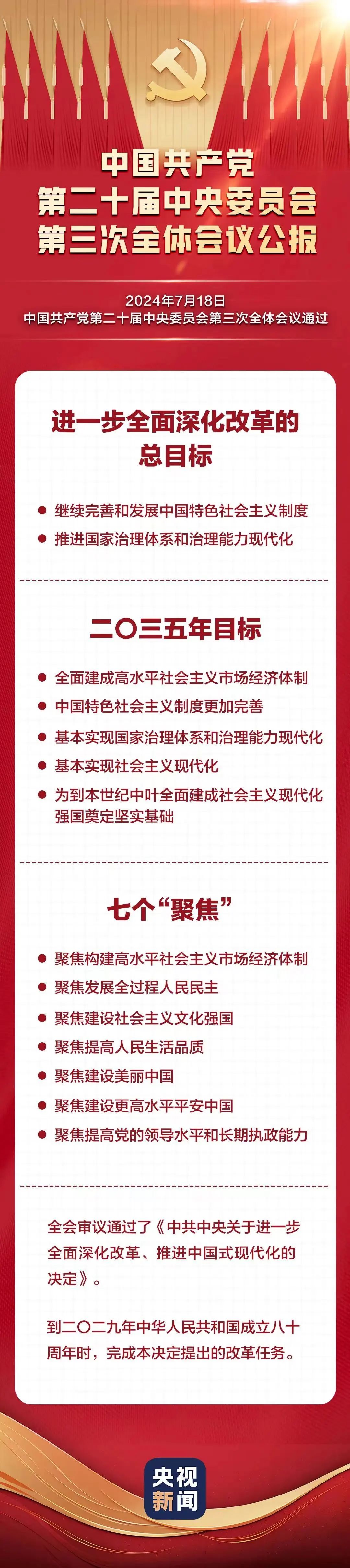 中国共产党第二十届中央委员会第三次全体会议,于2024年7月18日在北京胜利闭幕。全会听取和讨论了习近平受中央政治局委托所作的工作报告,审议通过了《中共中央关于进一步全面深化改革、推进中国式现代化的决定》。全会从各方面肯定了新时代以来全面深化改革的成功实践和伟大成就,对未来赓续发展提供了指引。我们应当完全遵照党中央的指示,坚持党的领导,以饱满的热情,坚定的信心,立足本职岗位,结合明升M88 和明升M88 的实际情况,团结一心,努力奋斗,为明升M88 创新发展贡献智慧和力量。