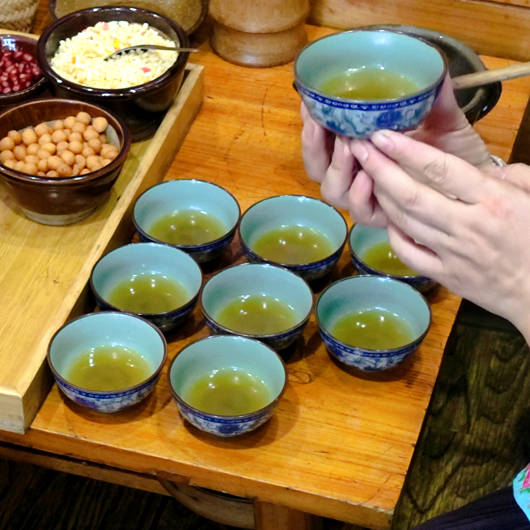 一碗碗色香俱全的油茶,是团队成员技艺研习的生动写照,更是独属于三江侗族的文化魅力。团队成员一同品尝了这个跨越千年的侗族特色美食。“一道空、二道方、三道圆完四道甜。”在三四杯后,油茶汤的本味才显现出来。“在我们这里,男婚女嫁、新居乔迁、民俗节日等大型活动都离不开油茶。”侗家厨娘娓娓道来。此番下来,团队成员们不仅亲身体验了油茶的制作过程,而且更深刻领悟了油茶文化。