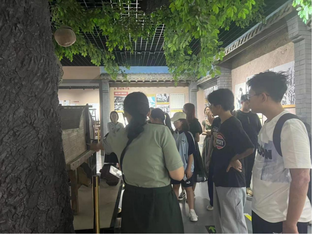 随后团队成员来到介绍解放战争时期的展厅。队员们通过各种图文资料和实体文物,了解到中国共产党带领广大群众与国民党进行了陇海战役、巨金鱼战役等大大小小的战斗,洞察游击战争中所蕴含的智慧,明晰“胜利是由广大人民用小推车推出来的”深刻道理,领悟中国共产党受人民爱戴的真正原因。那些珍贵的文物、生动的历史场景让队员们深刻体会到解放战争的艰辛与伟大,让他们更加珍惜今天来之不易的和平与安宁。