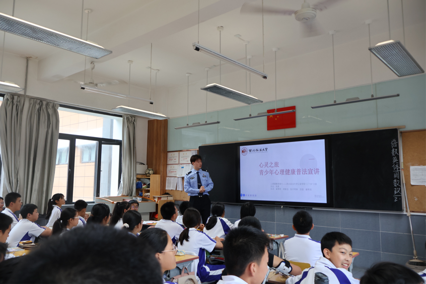 崔梦若:通过普法宣讲,我们不仅能够提高青少年对自身心理健康的认识,还能引导他们学会如何维护自己的心理健康权益。这不仅仅帮助了他们,同样也实现了我们作为大学生的个人价值。