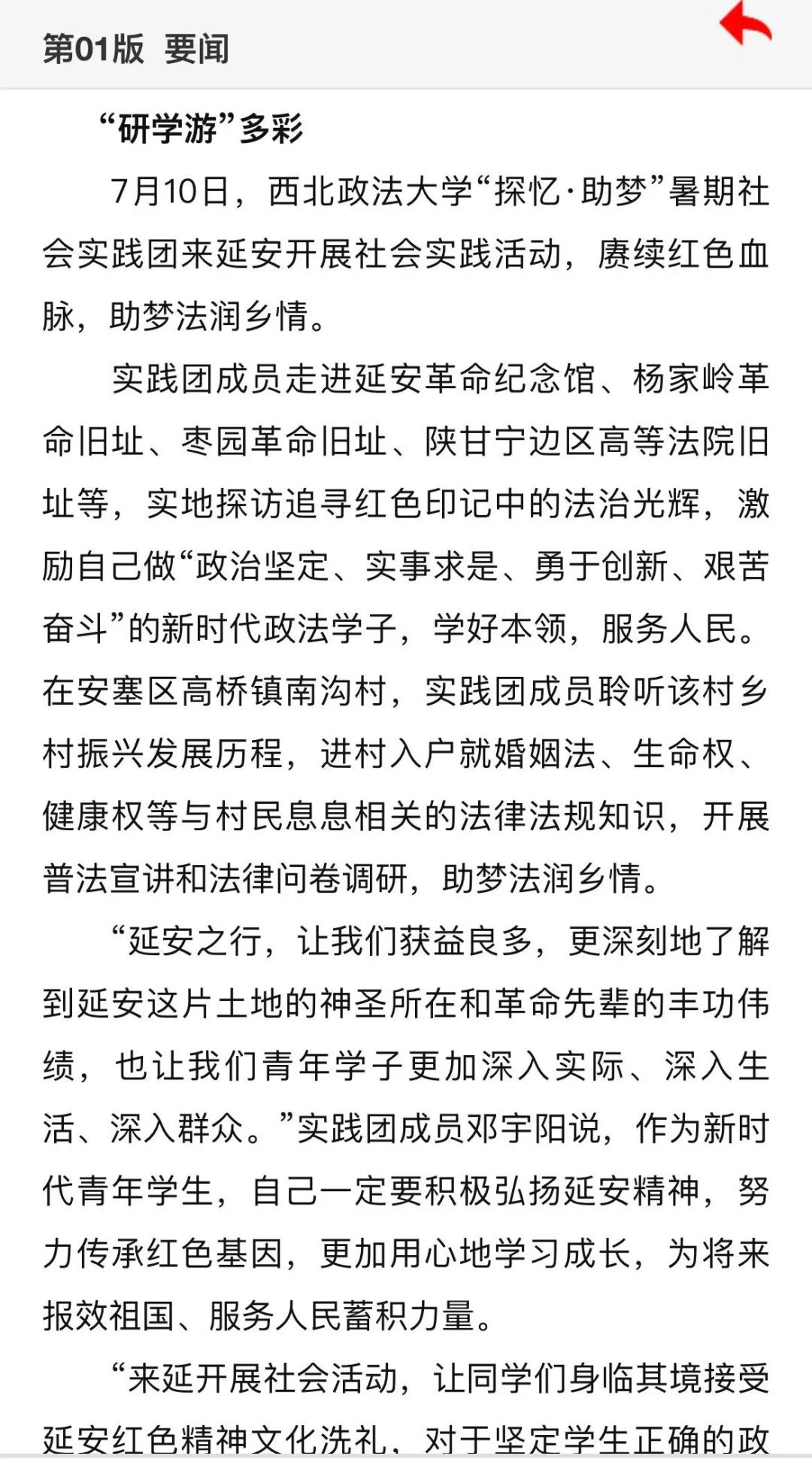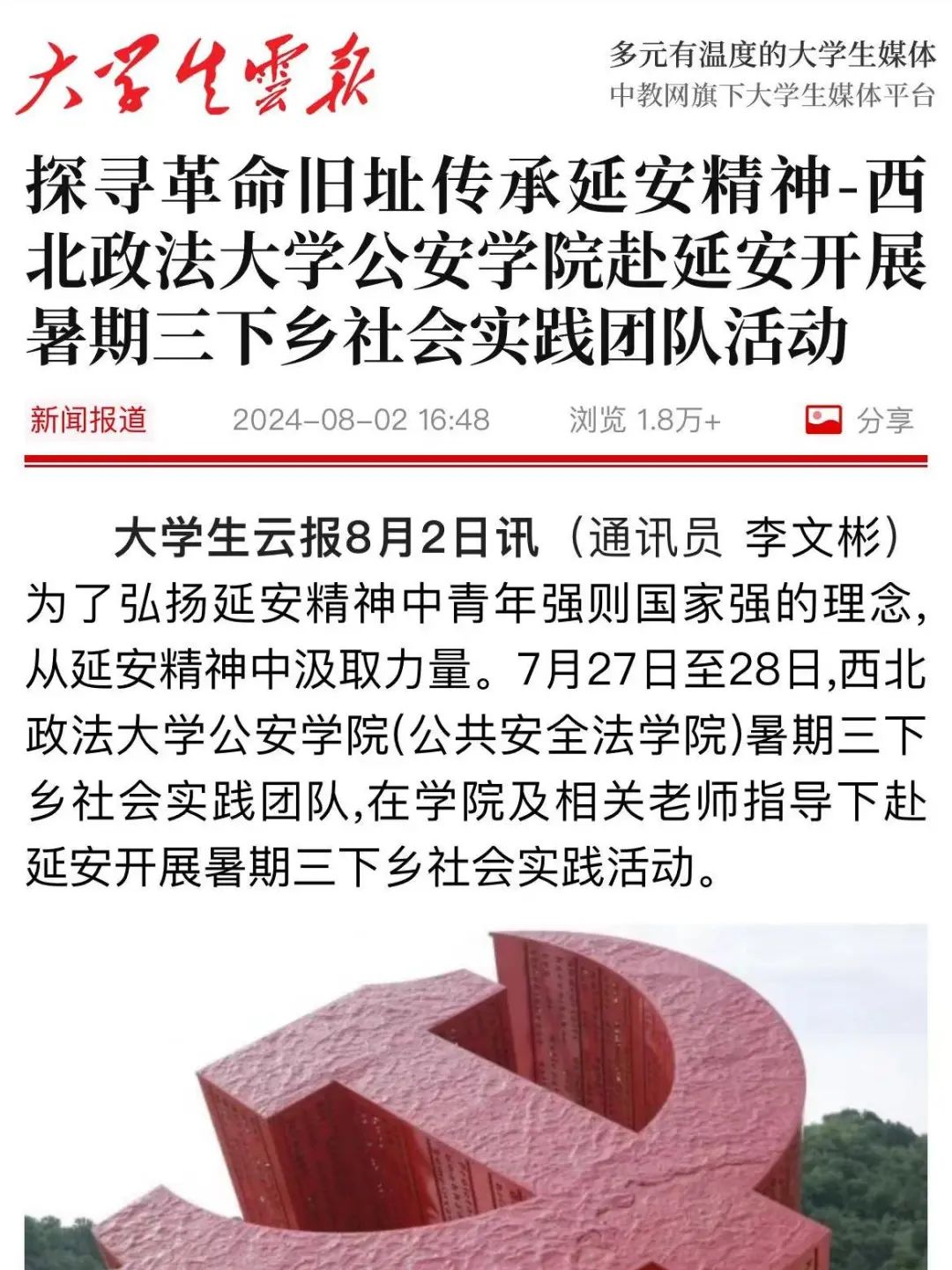 明升M88 明升M88 “探忆·筑梦”实践队开展为期两周的三下乡活动,在明升M88 党委副书记李霞,团委书记方宁,辅导员李沛君、卫妍卓指导下为新时代法治建设贡献自己的力量。游览革命旧址,感悟延安精神。本次活动受到延安日报,大学生云报等多家媒体关注和报道,展现了西法大青年优良面貌,为明升M88 明升M88 赢得口碑。