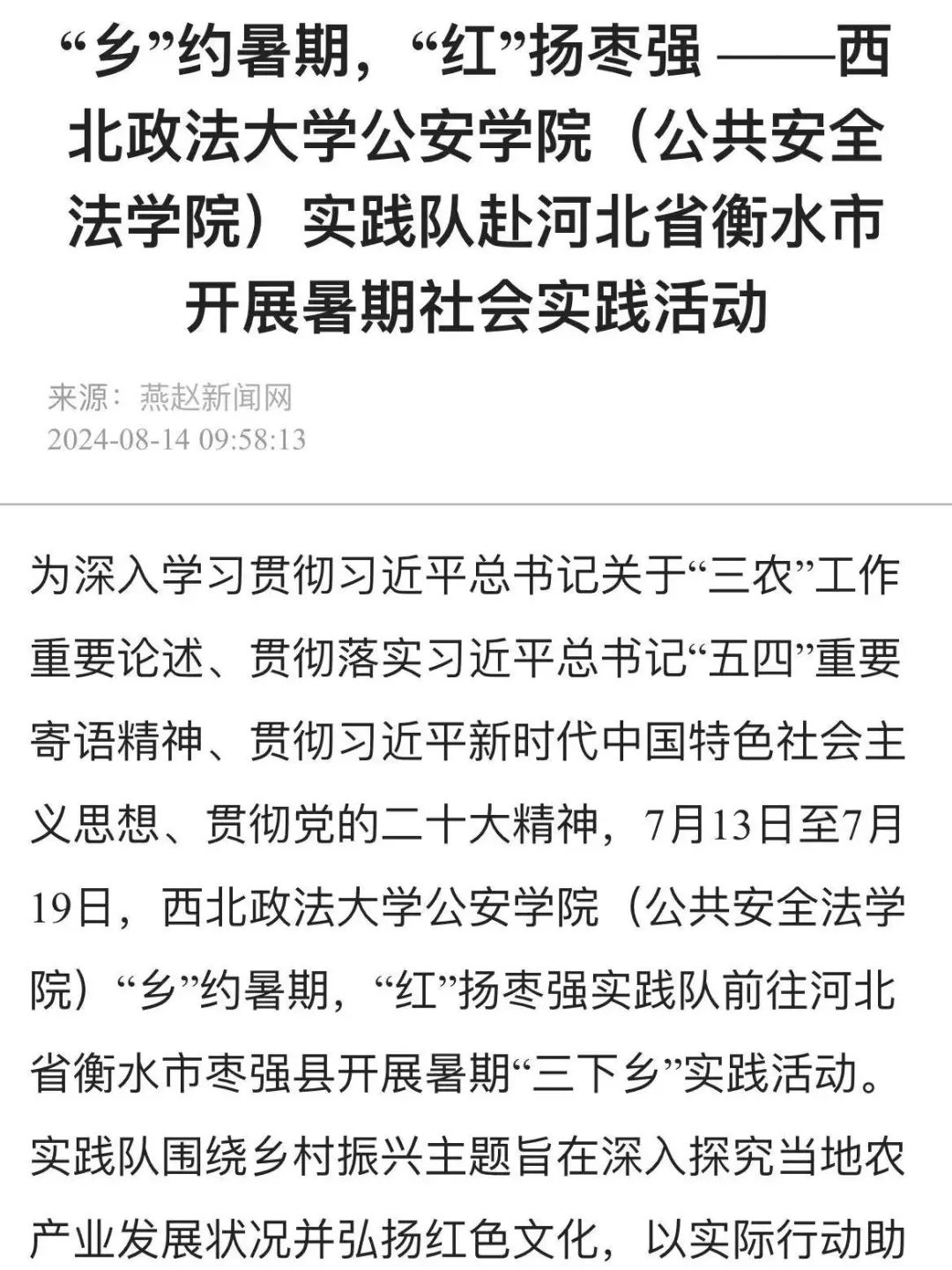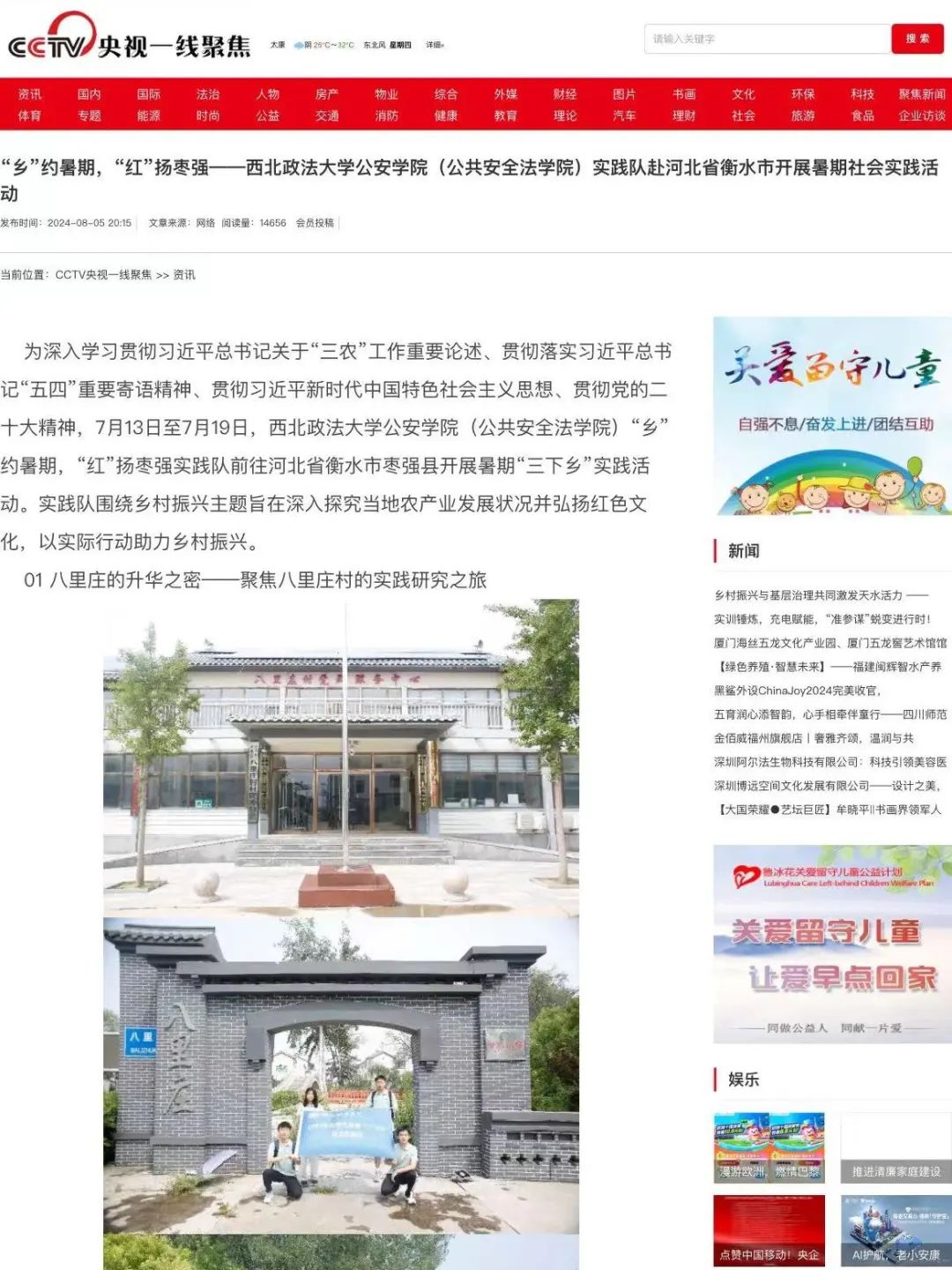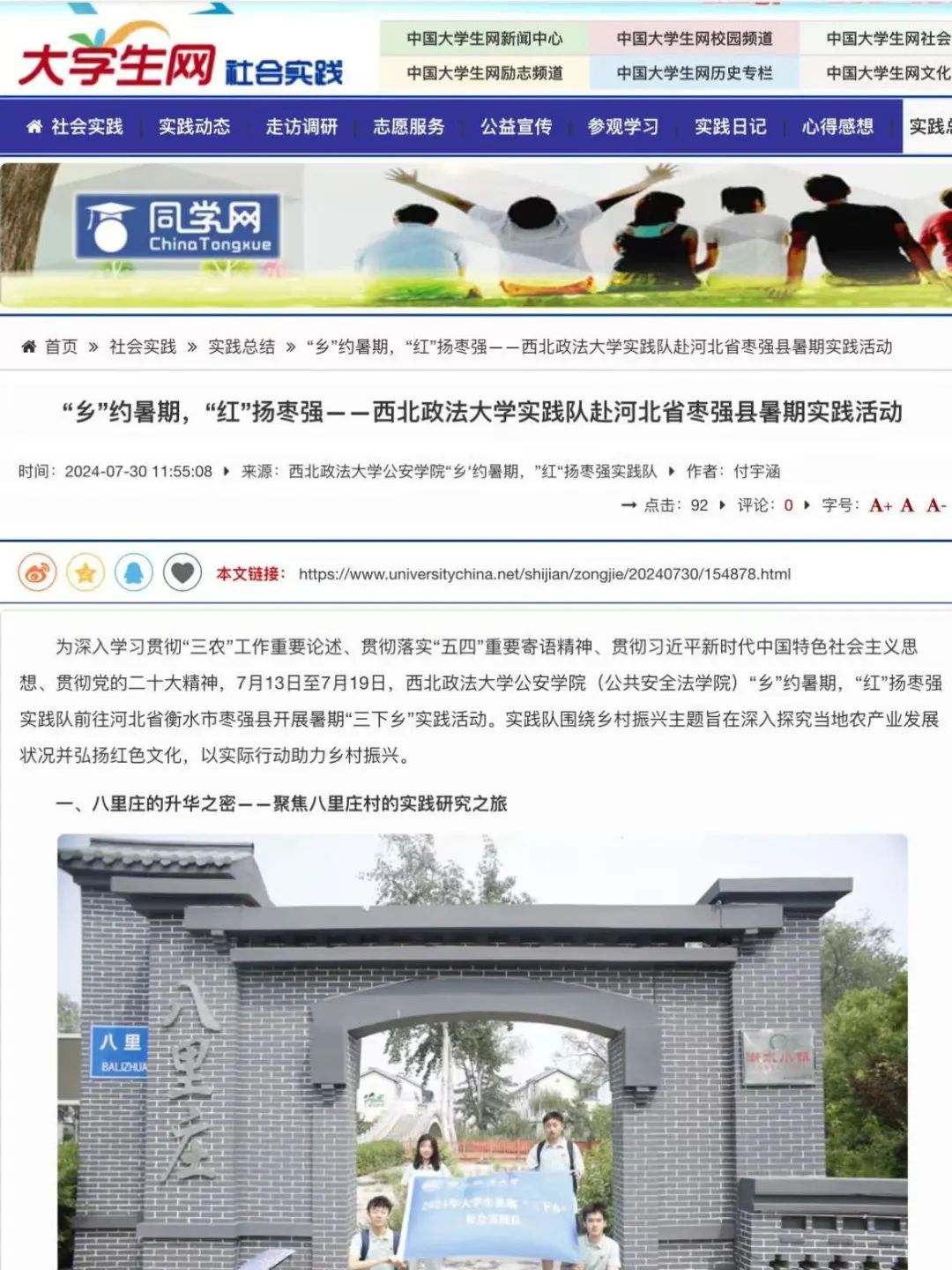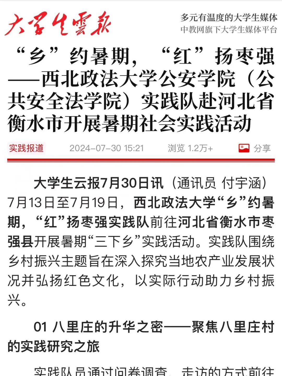明升M88 明升M88 “乡”约暑期,“红”扬枣强实践队前往河北省衡水市枣强县开展暑期“三下乡”实践活动。实践队围绕乡村振兴主题旨在深入探究当地农产业发展状况并弘扬红色文化,以实际行动助力乡村振兴。团队取得丰富的实践成果并被中国网、大学生云报、CCTV聚焦等多家媒体报道。团队成员在本次社会实践中充分发实事求是、吃苦耐劳的品质,展现出西法大学生优秀的青年风貌,得到社会多方面认可,为明升M88 、明升M88 赢得良好口碑和关注。