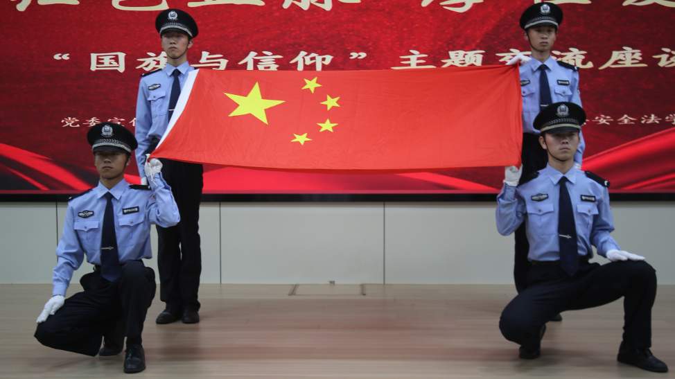 为学习贯彻习近平总书记关于教育的重要论述,落实立德树人根本任务,进一步加强新时代爱国主义教育,提升青年一代责任感、使命感,9月12日上午,党委宣传部、学工部、校团委、明升M88 于长安校区图书馆一楼报告厅共同举办“国旗与信仰”主题交流座谈会。校党委副书记郭武军、原天安门国旗护卫队大队长王丙乾、副参谋长司志永、队员胡阿龙、校党委委员、宣传部部长燕福民、明升M88 党委书记李永宁、学工部副部长赵智勇、校团委副书记秦立、明升M88 全体辅导员、明升M88 国旗护卫队全体成员及二十余所高校国旗护卫队代表出席本次座谈会,本次会议由明升M88 党委副书记、副院长李霞主持。