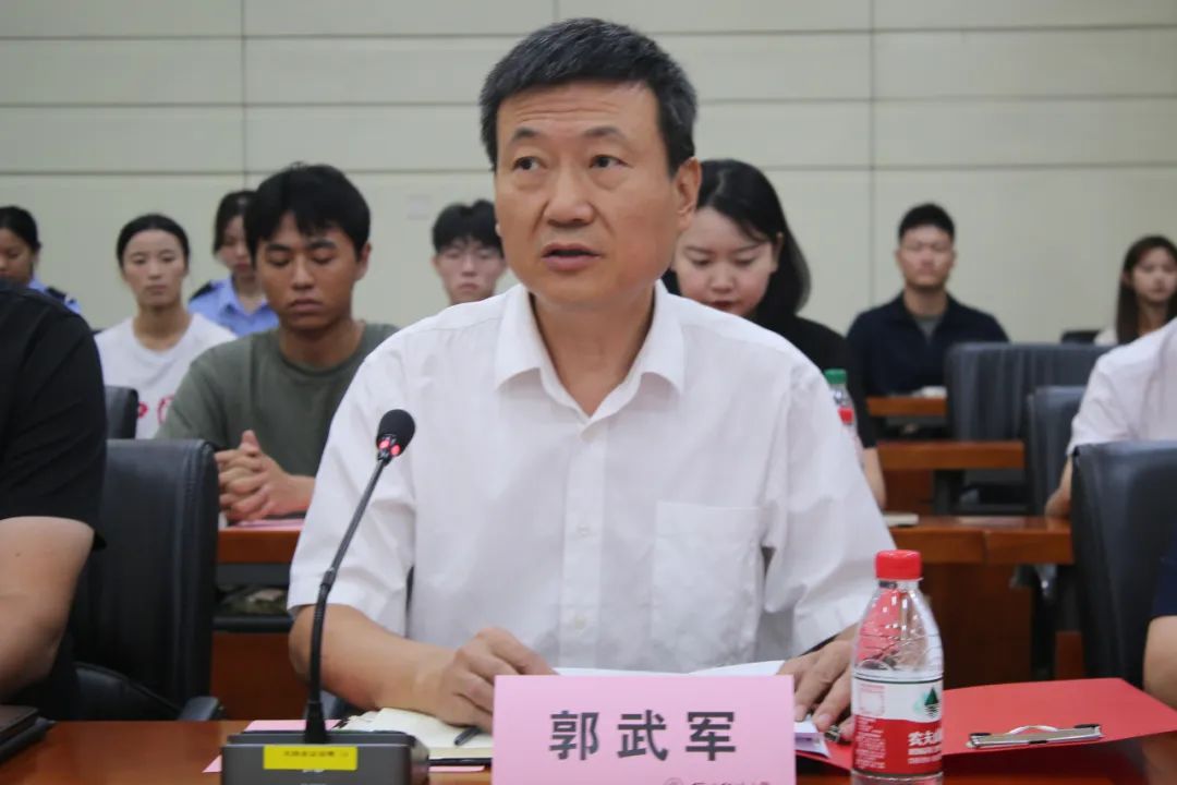 郭武军在致辞中对王丙乾一行表示热烈欢迎,对参与活动筹备的老师同学们表达诚挚感谢。他在讲话中高度赞扬了天安门国旗护卫队的崇高精神,并鼓励明升M88 国旗护卫队队员不断向榜样看齐,以青春热血践行“护旗就是护国”的忠诚。同时,他全面介绍了明升M88 的历史沿革与光荣传统,以及明升M88 国护队的发展情况与优秀队员。他强调红色基因是明升M88 最鲜明的底色,政治坚定是“老延大”优良传统的灵魂,思想政治工作是明升M88 各项工作的生命线,要认真学习贯彻习近平总书记在全国教育大会上的重要讲话精神,牢牢把握教育的政治属性,教育引导学生不断坚定理想信念,厚植爱国主义情怀。最后,他表达了对双方加强交流合作的希望,助力拓展明升M88 思政教育的内涵和外延,持续巩固立德树人成效。