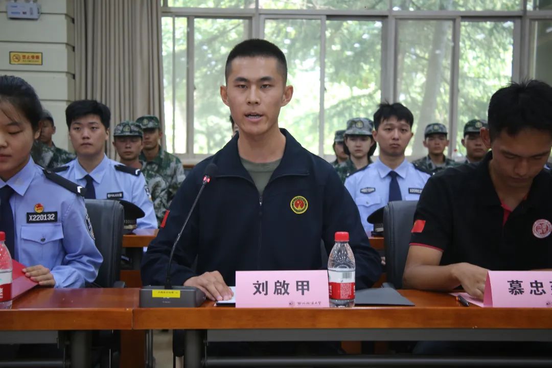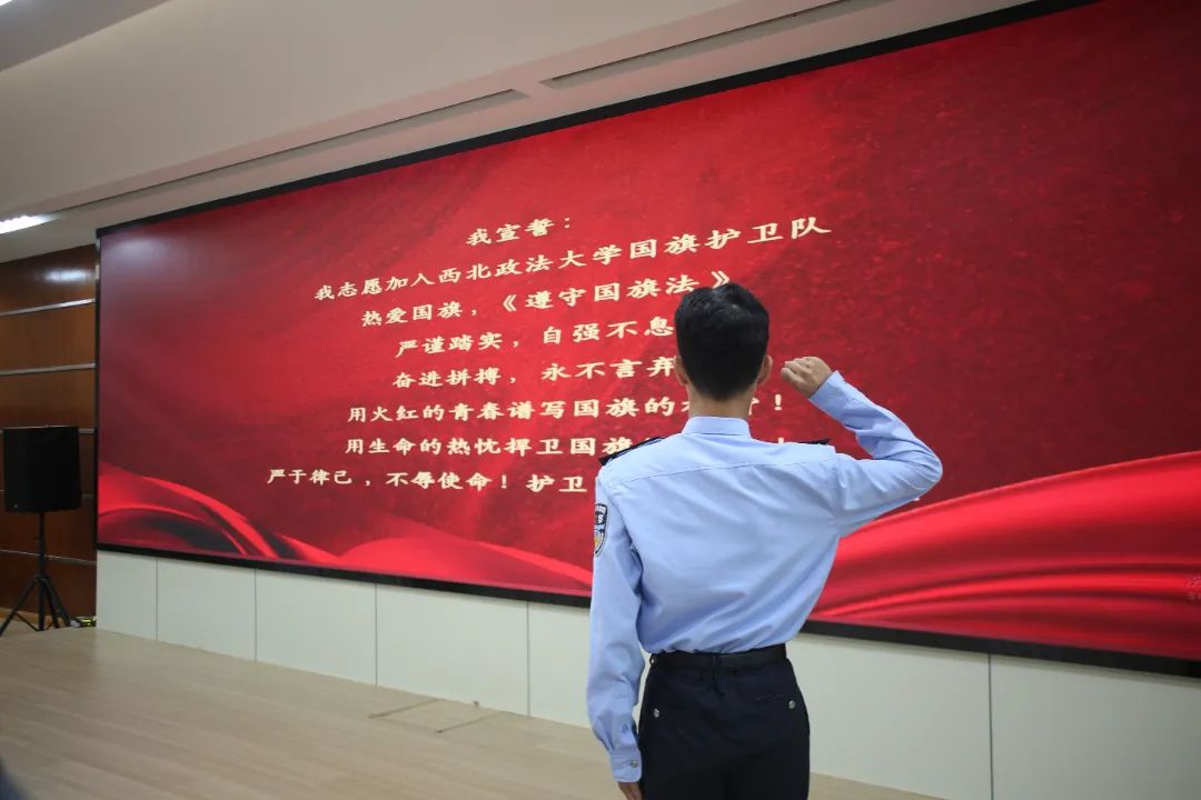 长安大学、西北大学、明升M88 国旗护卫队代表依次发言,他们各自阐述了明升M88 国护队的历史与传统,分享着个人与国护的故事,感慨于自己在国护的成长和进步,话语中充满了对这段经历的珍视和对未来的憧憬。明升M88 国护预备役代表黄振珂同学在发言中坚定地表示,他们将接过红色接力棒,继续传承和弘扬国护的宝贵精神,努力讲好西法大国护“晨升暮降,风雨无阻”的青春奋斗故事,谱写无愧于自己、无愧于时代的青春之歌。