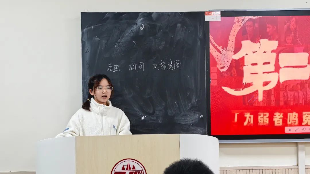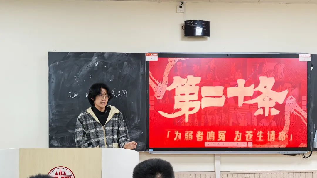 观影结束后,同学们依次表达了对于电影的个人感悟,陈培圯向参会人员们详细讲解了“正当防卫”与“防卫过当”的司法认定,并以甘肃省泾川县王某民正当防卫不批捕案为例子,帮助同学理解相关知识;王侨向参会人员们扩展了法律判决对社会舆论和公众情绪的影响,号召同学们应做有责任心、有温度的法律人。