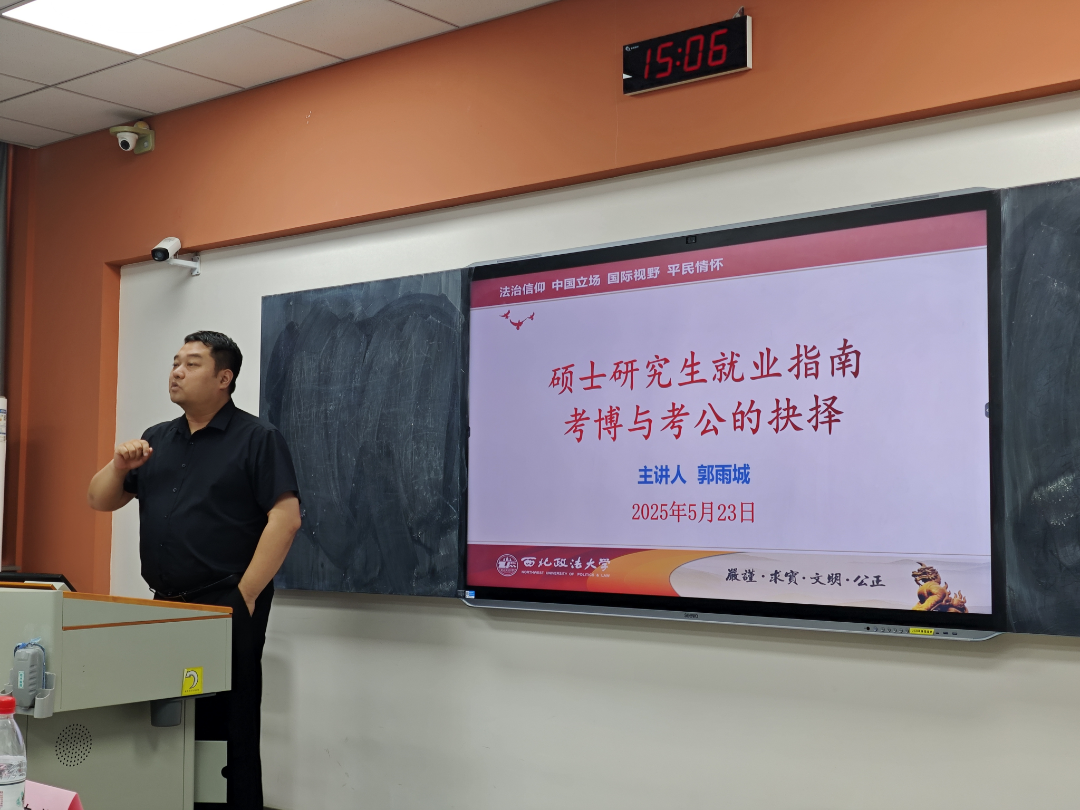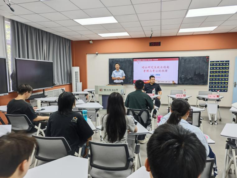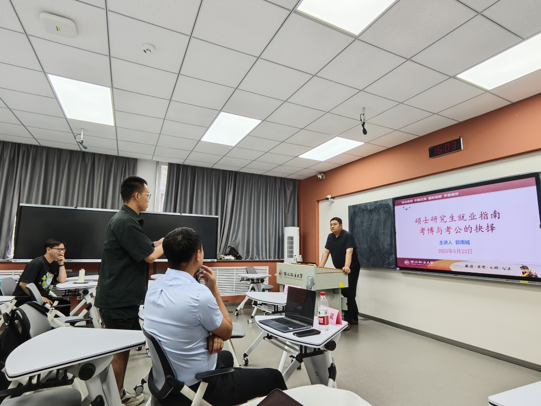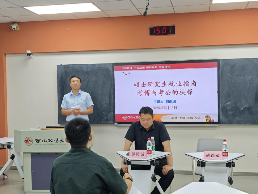 在研究生阶段,同学们常常面临一个重要的抉择:是继续深造考博,还是进入公务员队伍考公?这是一个关乎未来职业发展和个人成长方向的关键决策。为解答研究生这一困惑,5月23日,明升M88 于雁塔校区三号教学楼3504教室举办“研途时光”第三期:硕士研究生就业指南考博与考公的抉择。本次活动邀请明升M88 教师郭雨城主讲,由院长助理胡德葳副教授主持。