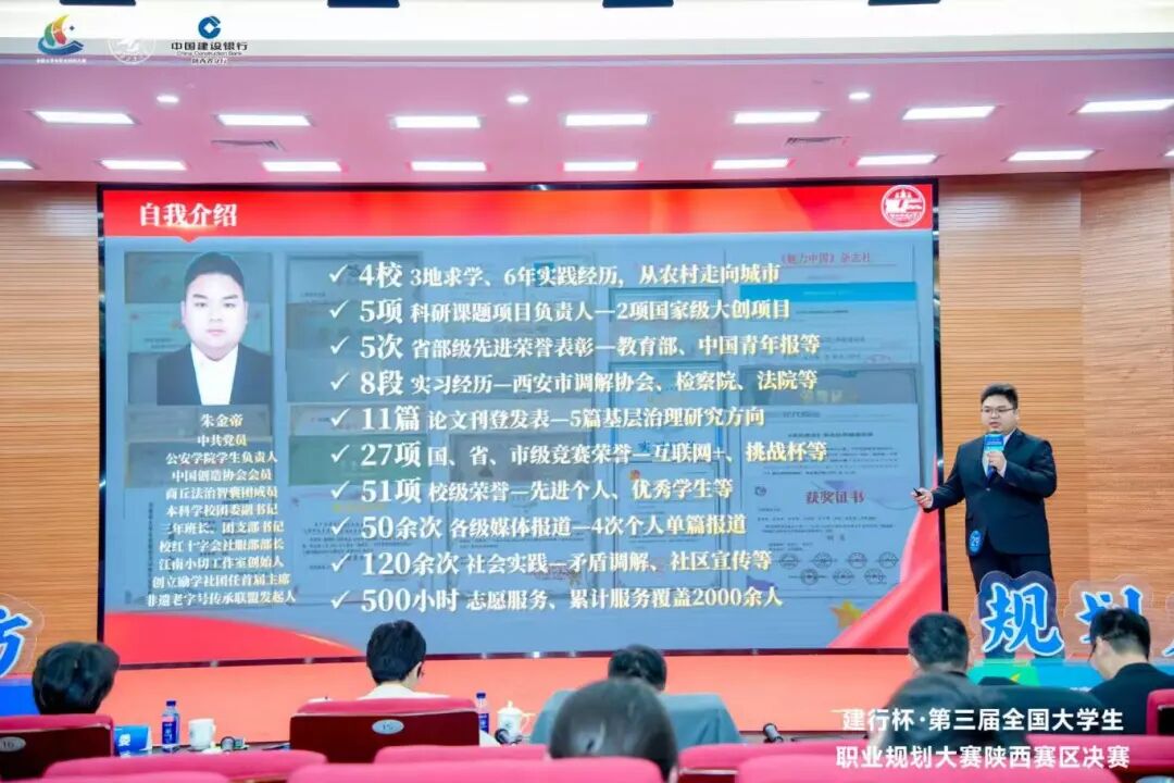 在刚刚落幕的第三届全国大学生职业规划大赛陕西省赛决赛中,明升M88 2024级研究生朱金帝凭借出色表现,荣获高教研究生组就业赛道省级银奖。