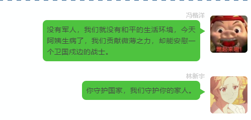 你离家万里守护大家,我们替你守护小家。你为我们所做的一切,无上光荣。
