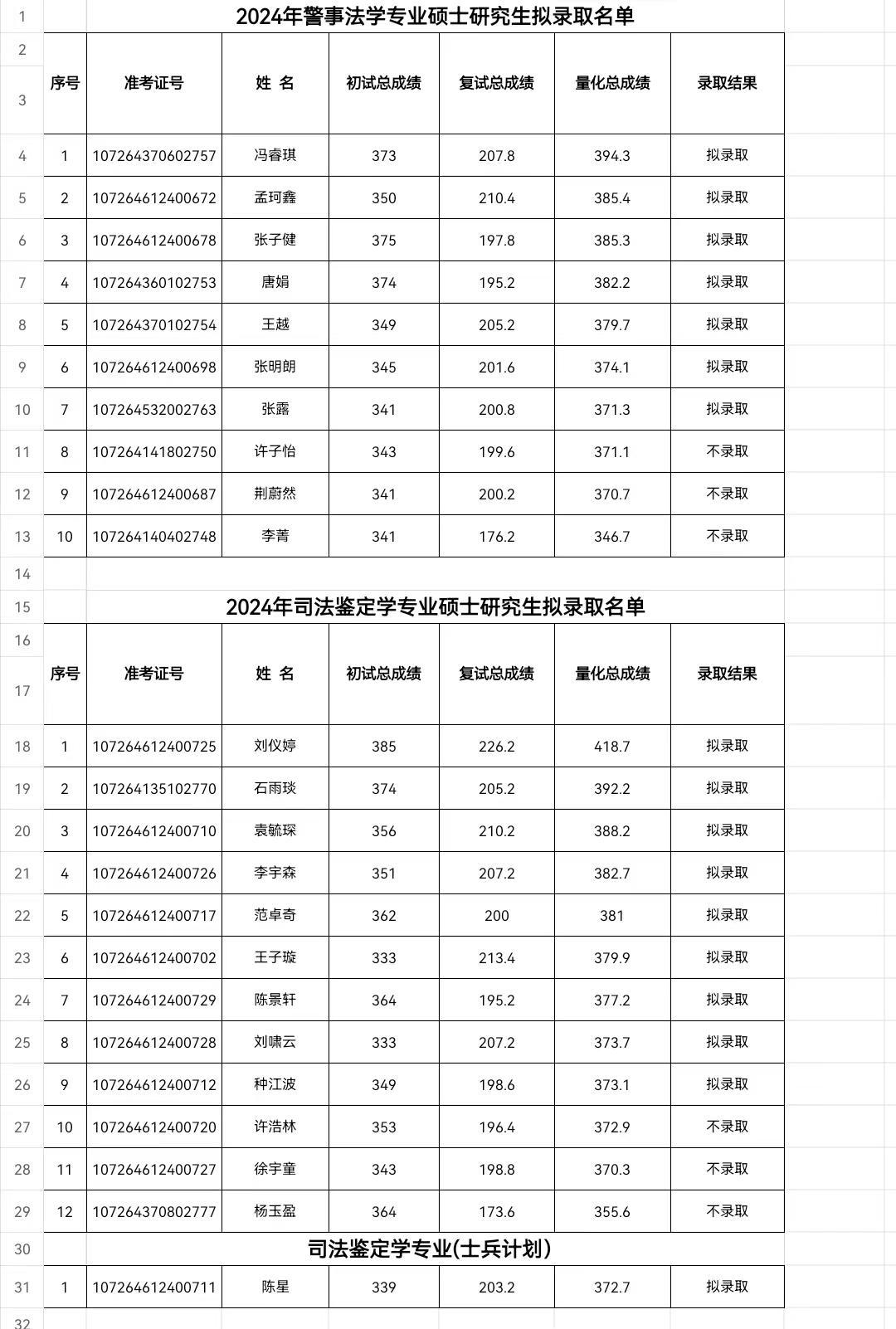 根据《明升M88 2024年硕士研究生复试录取方案》经明升M88 复试领导小组评定,研究生院审核,现将警事法学、司法鉴定学专业硕士研究生拟录取名单予以公示(具体名单见附件),公示期:公布之日起10个工作日。如有异议,请于公示期内以书面形式报明升M88 教务办(长安校区天平楼B座一层111办公室),逾期不予受理。