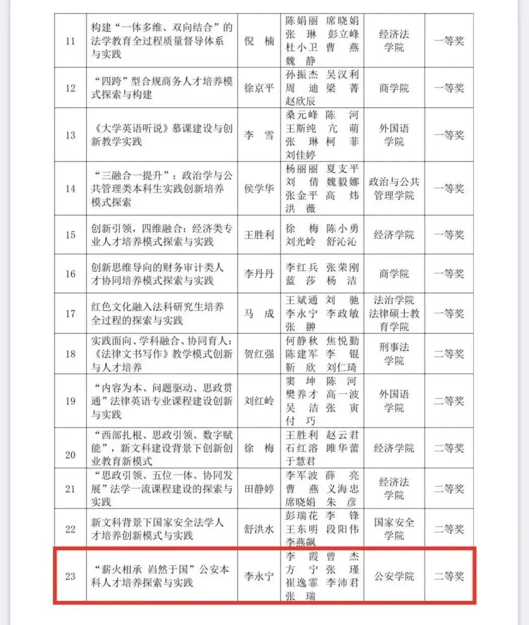 近日,明升M88 2022年度优秀教学成果奖评选结果出炉,明升M88 许志老师主持的《贴近实战 追求卓远:侦查人才培养模式的探索与实践》荣获特等奖,李永宁老师主持的《“薪火相承 岿然于国”公安本科人才培养探索与实践》荣获二等奖。