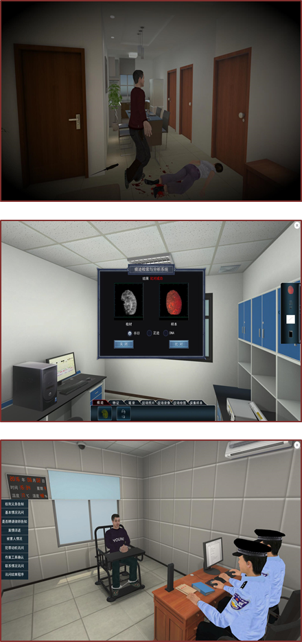 《刑事案件侦查虚拟仿真综合实验》课程以2015年陕西省教育教学改革项目《刑事案件侦查虚拟仿真实验软件》为依托,在课程团队负责人台治强教授的主导,明升M88 和明升M88 各级领导的大力支持下,经过课题组全体成员的努力,2016年软件研发取得成功,并取得软件著作权登记证。《刑事案件侦查虚拟仿真综合实验》将虚拟现实技术和系统仿真技术有机结合,解决了刑事案件侦查过程不可逆,仪器设备成本高昂,实物重建模拟现场费时费力等问题。该课程在全国公安政法院校中首次通过虚拟仿真的形式还原一个真实案件的侦查全过程,将案件侦查所涉及的多门课程相关知识和内容整合,融会贯通,构成一个跨课程的集综合知识和技能训练为一体的综合设计型实验。