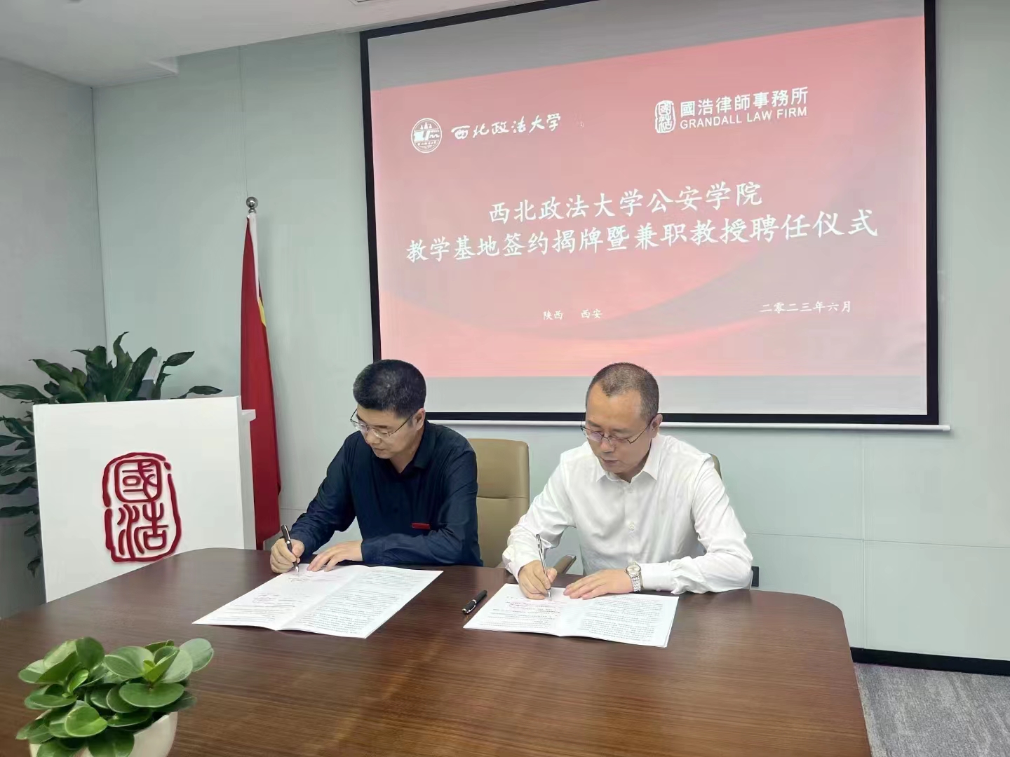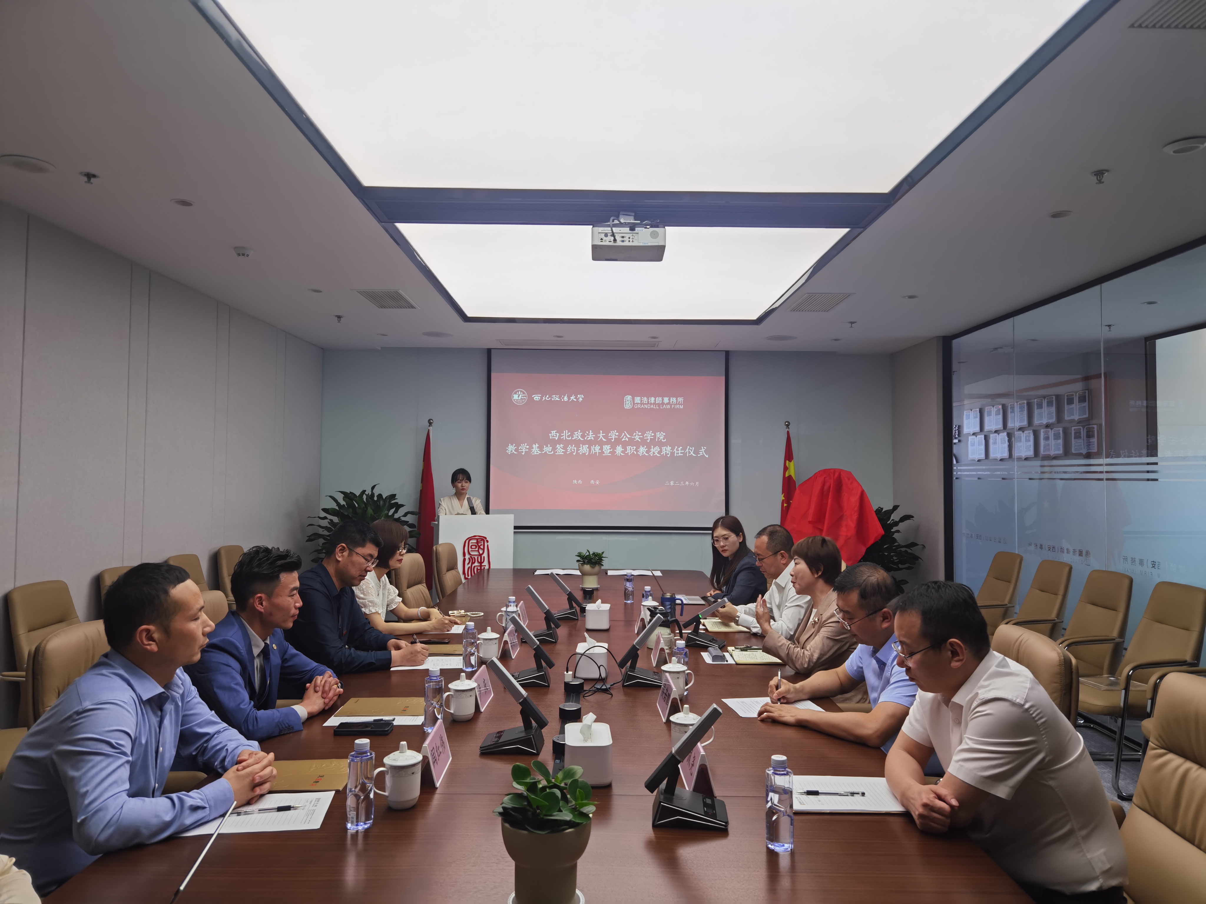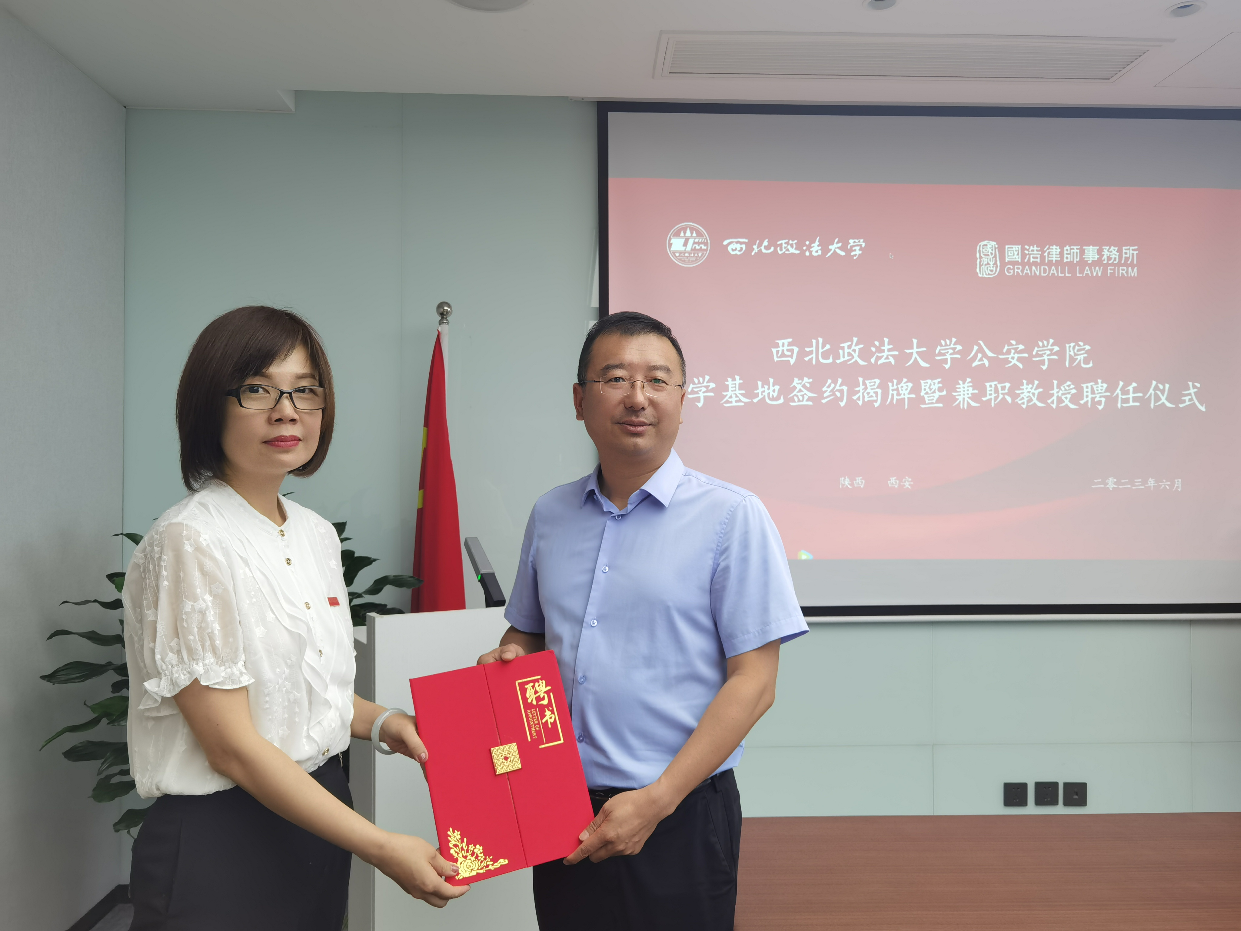 为进一步深化院所合作成效,拓宽毕业生就业渠道,引入优质实践教学资源,推动明升M88 优秀教师与优秀律师的互动交流,6月8日,明升M88 党委书记李永宁、副院长李莉一行到访国浩律师(西安)事务所,双方举行了校企合作签约暨明升M88 教学科研基地揭牌仪式。国浩律师(西安)事务所主任刘风云,明升M88 校友、国浩律师(西安)事务所执行副主任张冰,明升M88 办公室主任马婷婷参加仪式。