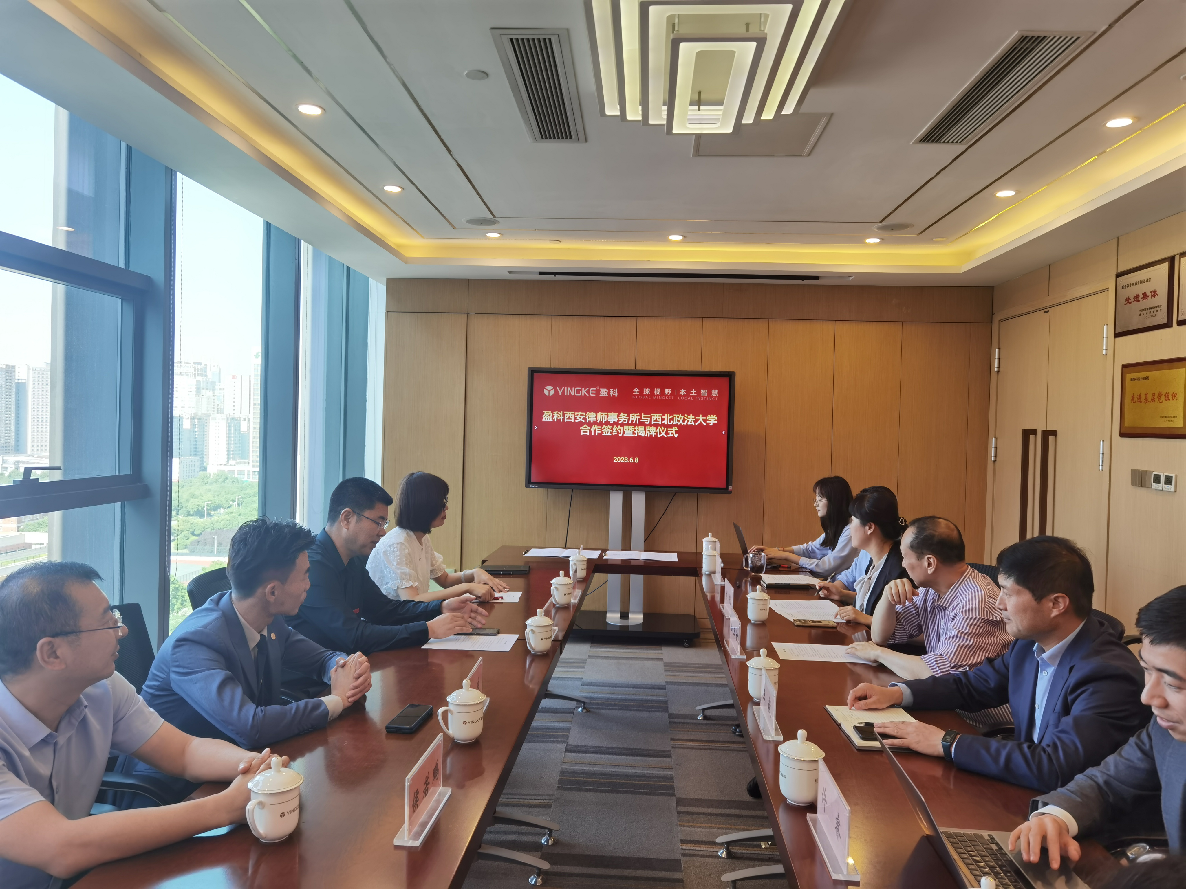 为进一步深化院所合作成效,拓宽毕业生就业渠道,引入优质实践教学资源,推动明升M88 优秀教师与优秀律师的互动交流,6月8日,明升M88 党委书记李永宁、副院长闫小军、副院长李莉一行到访盈科西安律师事务所,双方举行了校企合作签约暨明升M88 教学科研基地揭牌仪式。盈科中国区副主任、清华大学法明升M88 陕西校友会会长白正谊,盈科西北区域管委会委员、西安分所管委会副主任王毅,高级合伙人刘东晨,明升M88 校友、高级合伙人刘艳,合伙人许睿,明升M88 办公室主任马婷婷参加仪式。李永宁一行首先参观了盈科西安律师事务所,王毅介绍了律所的办公环境、党建文化等内容。