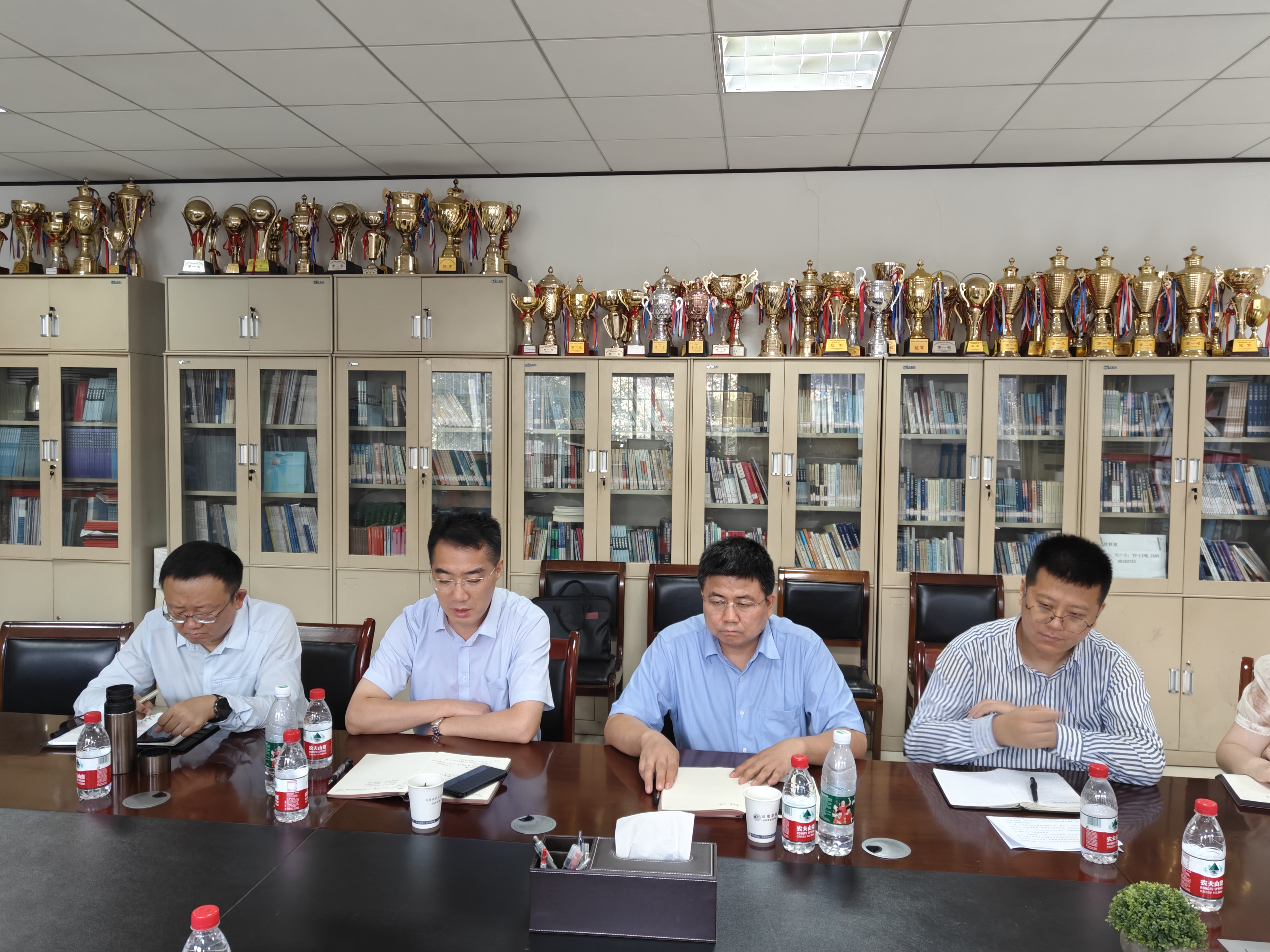 8月25日上午,校党委副书记张军政走访明升M88 ,检查新学期各项准备工作,校党委宣传部部长燕福民,人事处处长董玮陪同检查。明升M88 班子成员及各科室负责人参加会议。