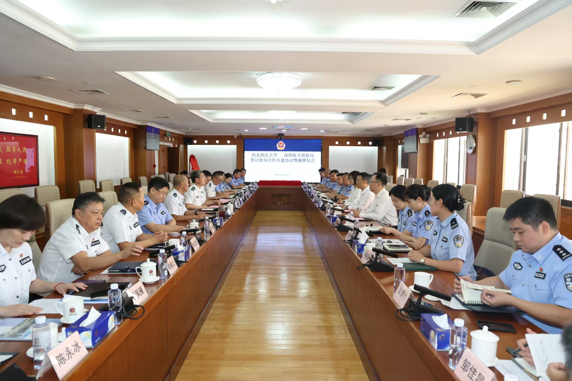 为深入学习贯彻党的二十届三中全会决定作出的“完善以实践为导向的法明升M88 校教育培养机制”部署,加强高校与实务部门合作交流平台建设,2024年10月24日,明升M88 与深圳海关缉私局共同举行校局合作共建协议签订暨揭牌仪式。副校长赵全宇与深圳海关缉私局局长张军强代表双方共同签署《明升M88 深圳海关缉私局校局合作共建协议》,并为“明升M88 实践教育基地”揭牌。