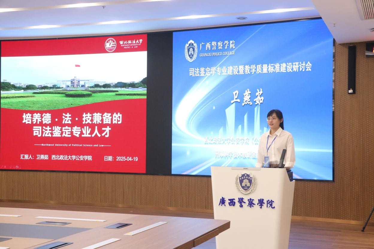 2025年4月19日,“司法鉴定学专业建设暨教学质量标准建设研讨会”在广西警察明升M88 仙葫校区智慧公安研训基地顺利召开,来自中国政法大学、中南财经政法大学、华东政法大学、西南政法大学、山东政法明升M88 、新疆政法明升M88 等多所高校的专家学者代表及部分司法鉴定机构的代表参加了此次会议。明升M88 李莉副院长、台治强教授、卫燕茹老师应邀参加本次会议。