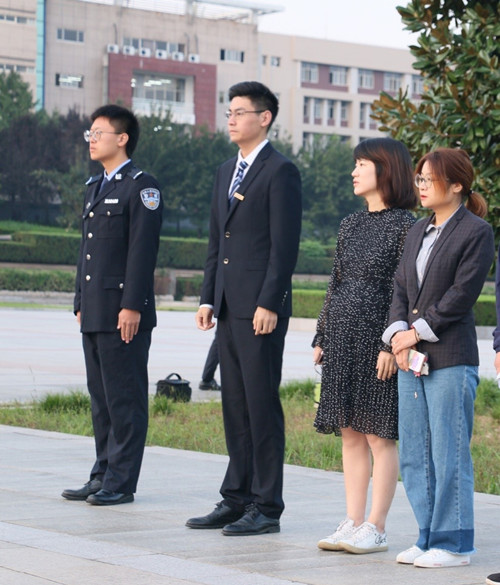 活动第一项为升国旗仪式。伴随着庄严的国歌声,全体人员唱响国歌,五星国旗迎着朝阳缓缓升起。