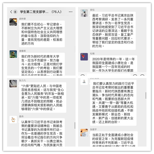 全体党支部成员在家认真观看了新闻视频,并撰写了学习心得,正式网络会议于2020年5月8日16:20分正式开始。会议由支部书记李凯主持,参会人员为学生第二党支部全体成员,同志们积极讨论,发表自己的感想。