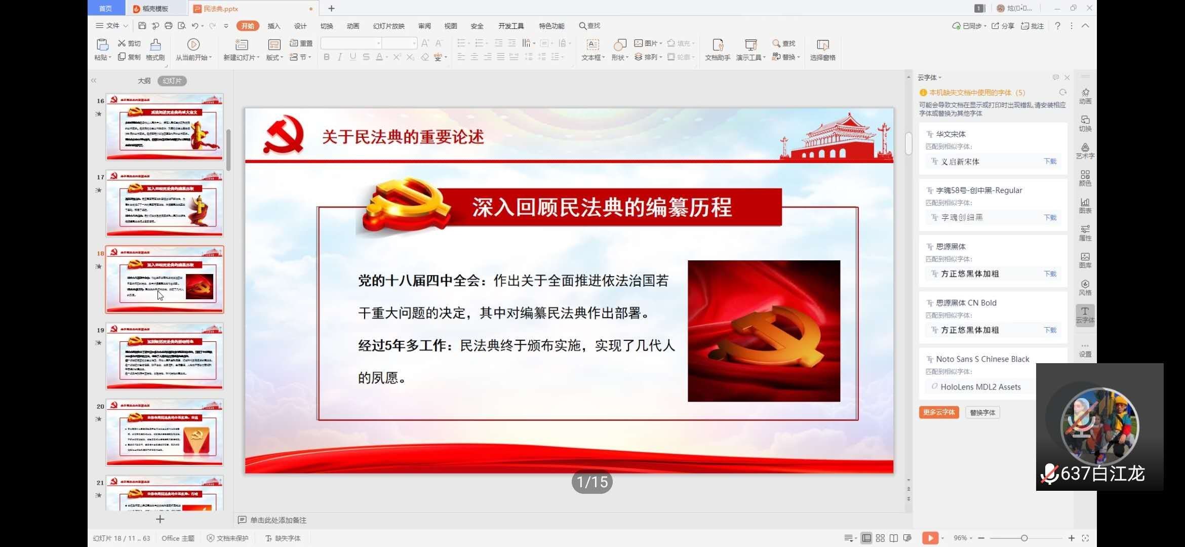 2017级的全体同学们通过观看明升M88 名师组织同学们观看明升M88 名师大讲堂系列视频,同学们共同进行线上学习,班内探讨,发表自己的观点和看法。同时组织同学们阅读明升M88 知名校友孙宪忠教授有关于《民法典》编撰的相关问题,深入了解《民法典》从开始到实施的过程,并且进行讨论,相互学习。同学们利用课余时间,积极配合学习,各抒己见,发表自己的看法,是当代大学生们更加关注民生,也为专业课学习提供了更多的实践内容,充实了同学们的课余学习和生活。