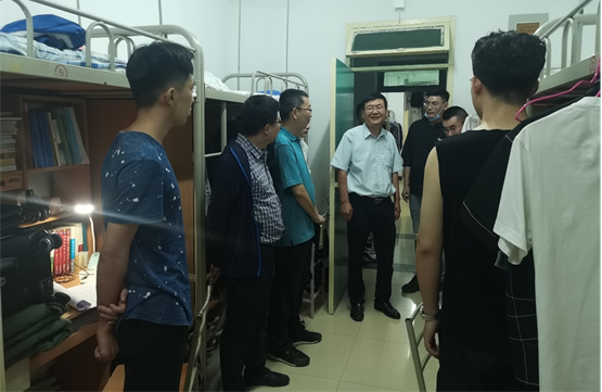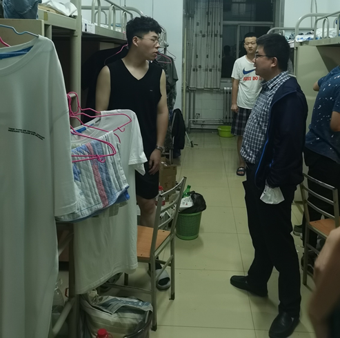2020年8月18日晚9点30分,明升M88 党委副书记郭武军、党委学工部部长燕福民等一行深入明升M88 学生宿舍看望学生学习生活状况,明升M88 党委副书记寇汉军及各年级辅导员陪同前往。