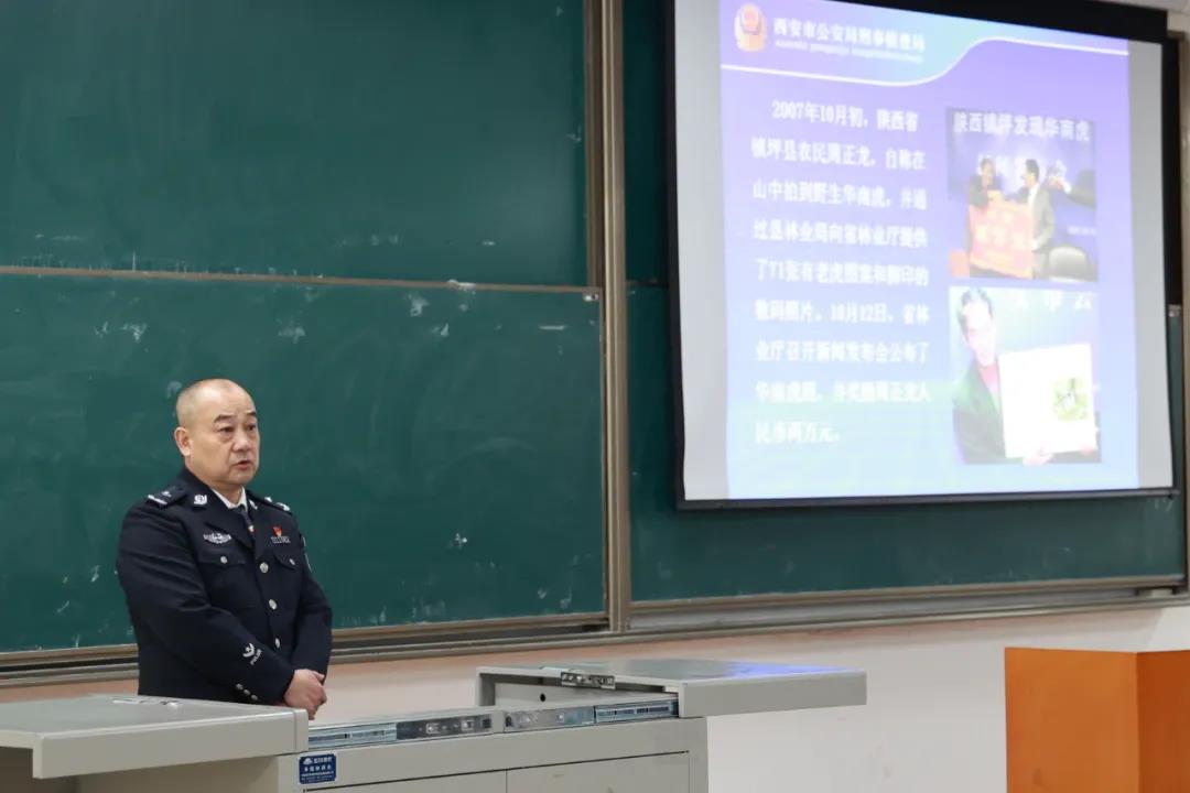 2020年12月3日晚,实务大讲堂系列活动之论案件现场重建—以“华南虎”等典型案件专题讲座,在明升M88 长安校区天平楼AJ22教室举行。此次讲座特邀西安市公安局刑侦局技术处警务技术二级主任、影像技术正高级工程师、三级警监赵仲学警官担任主讲,明升M88 副院长台治强教授主持本次讲座,明升M88 部分老师和全校同学们积极参加。讲座伊始,台治强教授对赵仲学主任的到来表示衷心的感谢和欢迎,并详细介绍了赵仲学主任的工作经历:公安部首届刑事技术课程专家,全国标准化委员会刑事照相、录像委员会委员,中国刑警明升M88 、中国人民公安大学及明升M88 客座教授,陕西省公安厅特聘刑侦专家等。赵仲学主任从警30多年来共出犯罪现场2000多起,参与侦破多起全省全国有名的影响重大的特大案件且发挥重要作用,发表相关刑事侦测论文二十余篇,因破获周正龙“华南虎”案受到陕西省公安厅的表扬,荣获个人二等功。赵仲学主任丰富的理论知识和实务经验为讲座现场的老师和同学们所称赞。