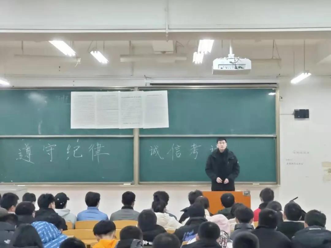 2020级辅导员崔逸霏老师在大会上提出:“我们作为学生,诚信考试是我们每一个学生的本分,任何同学都应该明确认识到诚信考试的重要性,坚决杜绝考试作弊”。同时希望大家抓紧时间复习,考出自己满意的成绩。