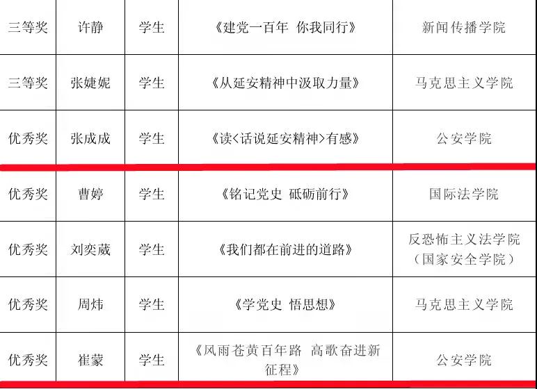 五名师生征文获奖:余瑞老师的«青春心向党,百年正芳华»荣获二等奖;张瑾老师的«不忘来时路,砥砺向前行»荣获三等奖;牛炉基同学的«记人民文学家柳青先生»荣获优秀奖,张成成同学的《读<话说延安精神>有感》荣获优秀奖,崔蒙同学的《风雨苍黄百年路,高歌奋进新征程》荣获优秀奖。明升M88