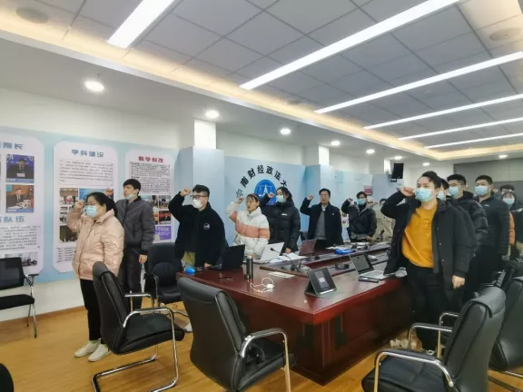 第二项,中南财经政法大学刑事司法明升M88 研究生办公室主任兼研究生辅导员彭倩老师带领全体参与人员重温入党誓词。