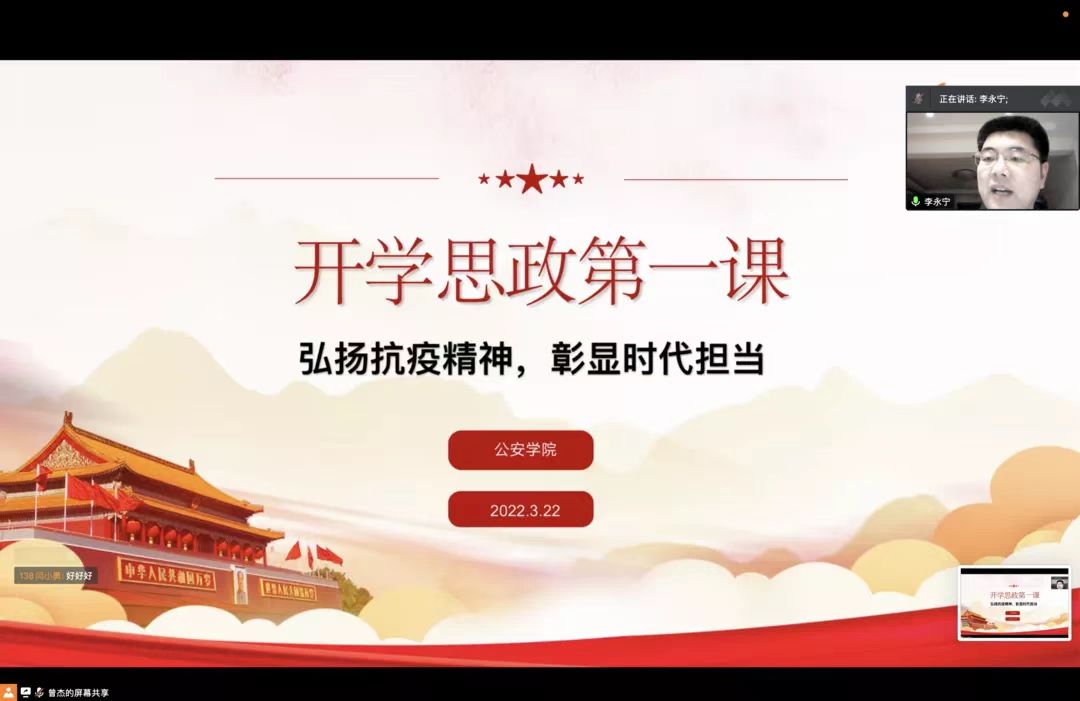 为深入贯彻习近平总书记关于“大思政课”建设的重要指示精神,深入推进将抗疫精神融入思政教育,明升M88 于3月22日组织开展新学期开学思政第一课。因疫情原因,本次课程采用线上方式进行,明升M88 党委书记李永宁、明升M88 院长程军伟、明升M88 党委副书记李霞以及2021级全体学生参加此次思政课。此次课程由明升M88 辅导员曾杰主持。