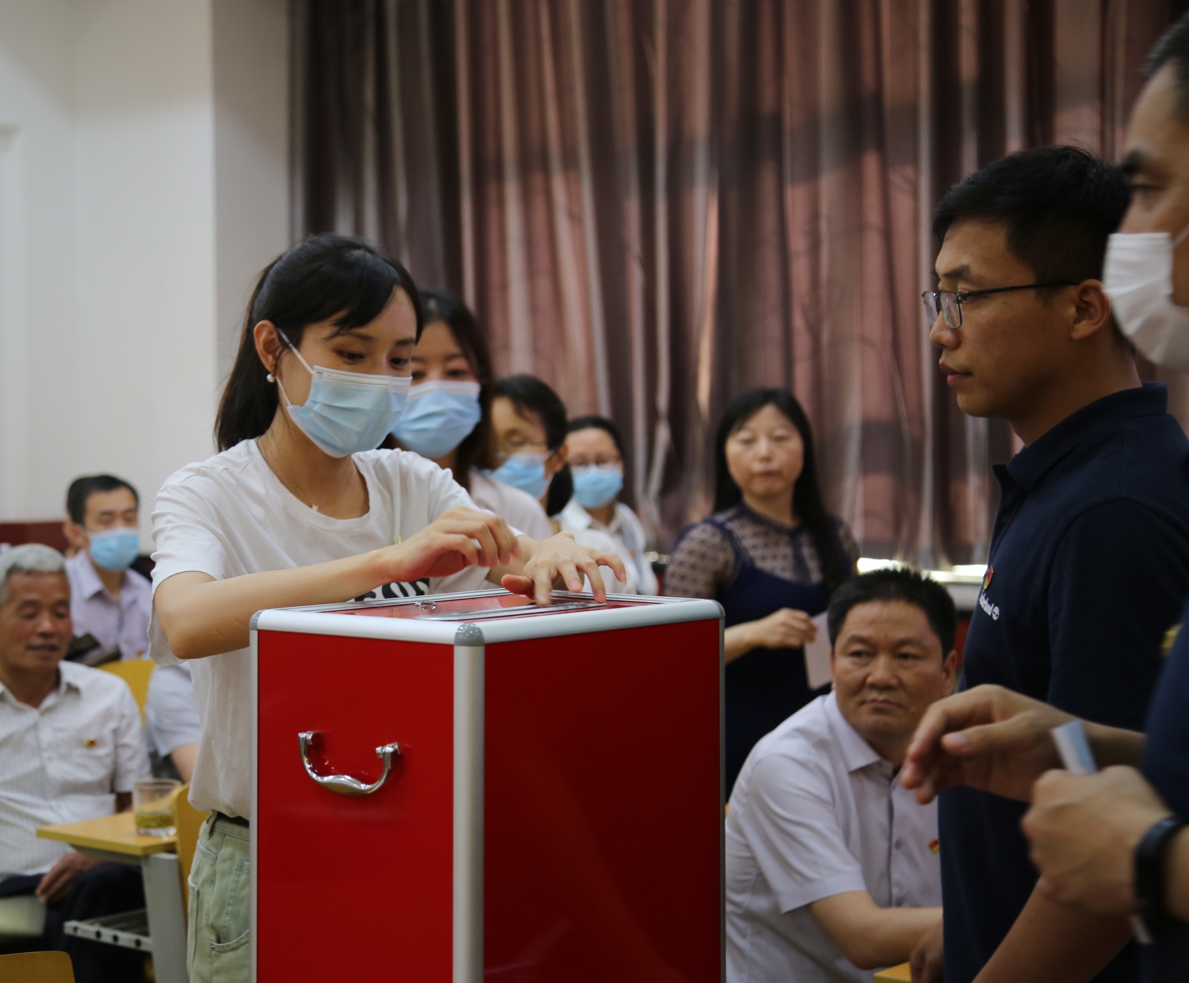 大会第二阶段,在总监票人刘妍良的主持下,选举正式开始。在清点到会人数、介绍代表候选人预备人选简历、发放选票等环节之后,全体正式党员郑重填写选票、有序投票,最终差额选举产生明升M88 出席明升M88 第四次党代会代表9名。
